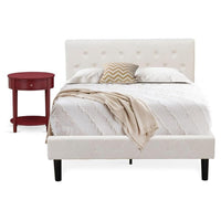 East West Furniture NL19F-1HI13 2 Piece Bedroom Set - Full Size Button Tufted Bed - Linen white Velvet Fabric Upholstered Headboard and a Burgundy Finish Nightstand