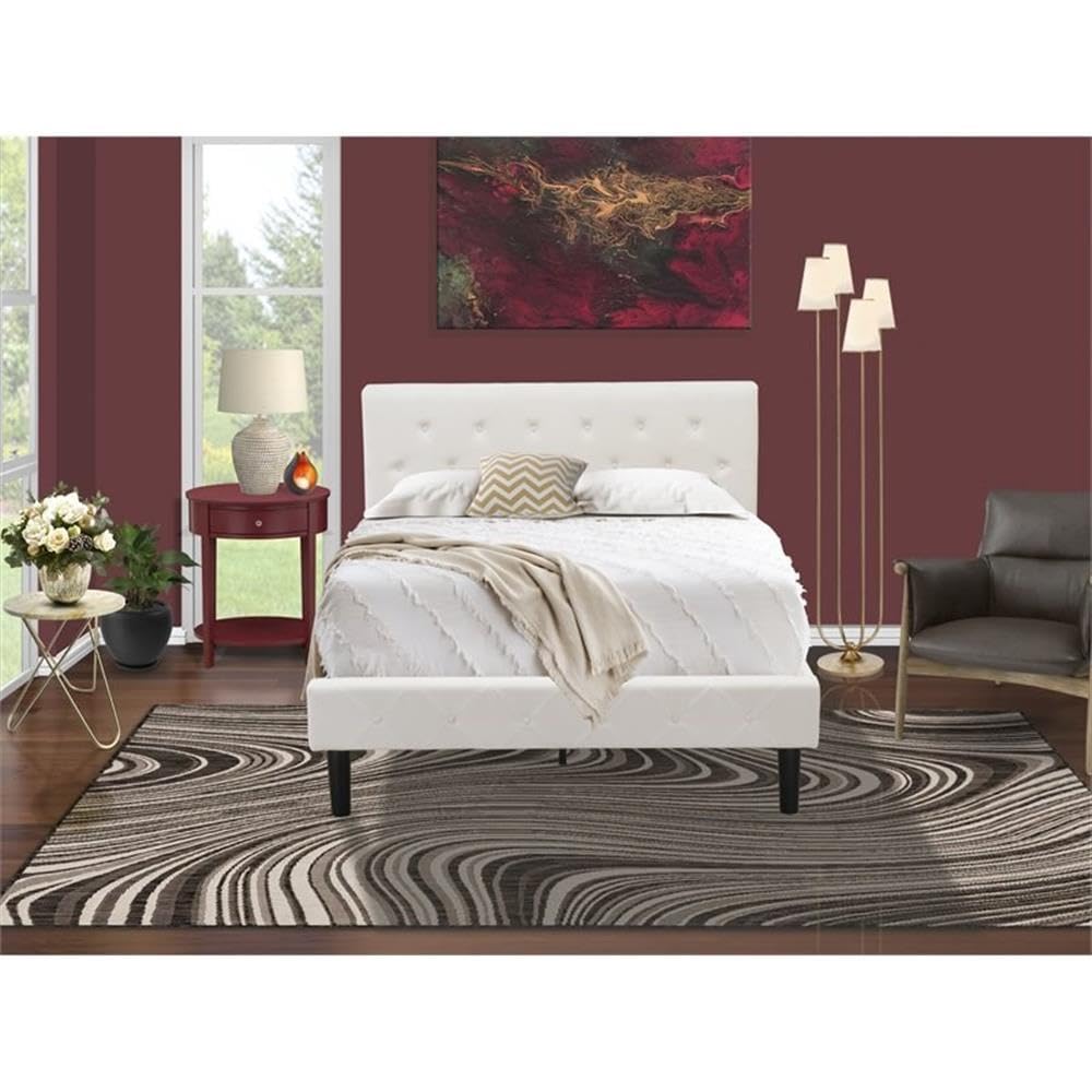 EAST WEST FURNITURE - NL19F-1HI13 - 2 PC BEDROOM SETEnhance your bedroom with this modern and forward-thinking full bedroom set, showcasing stunning style. Embrace classic glamour with the exquisite design of this set, featuring a sleek Black finish for the bed frame and a pristine White Velvet Color for the bed. The nightstand boasts a luxurious Burgundy hue, creating a delightful color combination that seamlessly integrates with any bedroom decor, adding to its overall appeal. Crafted from durable wood, this set includes a platform bed and a nightstand, making it the perfect choice for elevating any bedroom's decor. Its quality, versatility, and convenience ensure it will enhance the ambiance of any space. Moreover, this budget-friendly full-size bed set requires minimal maintenance, making it an excellent investment. Assembling the platform bed is effortless, thanks to the provided step-by-step instructions and hardware packs.BED SET FEATURES: Material: Engineered Wood Full Platform Bed Frame Fabric: Velvet Platform Bed Frame Fabric Color: White Full Bed Frame Legs Color: Black Modern Nightstand Top Color: Burgundy Night Stand for Bedroom Legs Color: Burgundy Dimensions of Bed: Length: 84; Width: 59; Height: 41.30. Night Stand Dimensions: Length: 23.7; Width: 23.7; Height: 28.Include in this Package: 1 Full Bed Frame and 1 Night Stand for BedroomNote: Mattress is not included with this Platform Bed Frame.