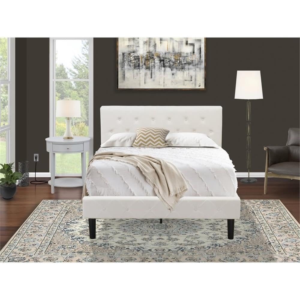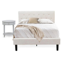 East West Furniture NL19F-1HI14 2 Piece Full Size Bedroom Set - Button Tufted Bed Frame - Linen white Velvet Fabric Upholstered Headboard and an Urban Gray Finish Nightstand