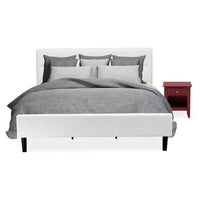 East West Furniture NL19K-1GA13 2 Piece King Size Bedroom Set - Button Tufted Wooden Bed Frame - Linen white Velvet Fabric Upholstered Headboard and a Burgundy Finish Nightstand