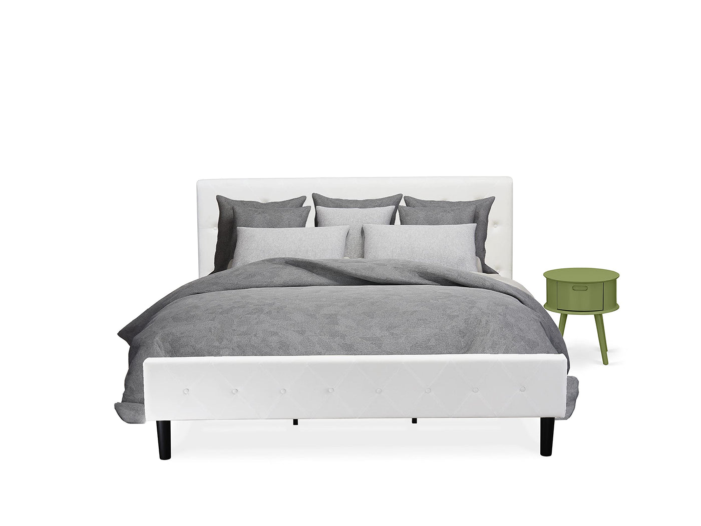 EAST WEST FURNITURE - NL19K-1GO12 - 2 PIECE BEDROOM SETThis gorgeous king size bedroom set is a shining example of innovative design and forward thinking. Add elements of traditional glamour to your bedroom with this gorgeous wooden bedroom set. Manufactured with durable wood, this bed set comes with a king platform bed frame and a wood nightstand to decor any bedroom. This bed set is sure to enhance any bedroom with quality, versatility, and convenience. This bedroom set is low maintenance furniture and it is a good choice because of how budget-friendly it is. This king size platform bed frame can be easily assembled with all the provided step-by-step assembly instructions and hardware packs.WOOD BEDROOM SET FEATURES: Material: Engineered Wood Wooden Bed Frame Fabric: Velvet Modern Bed Frame Fabric Color: White King Size Platform Bed Frame Legs Color: Black Modern Nightstand Top Color: Clover Green Night Stand Legs Color: Clover Green Dimensions of Bed: Length: 89; Width: 81; Height: 47. Night Stand Dimensions: Length: 19.6; Width: 19.6; Height: 22.Include in this Package: 1 King Size Bed and 1 Small Night StandNote: Mattress is not included with this Wood Bed Frame.