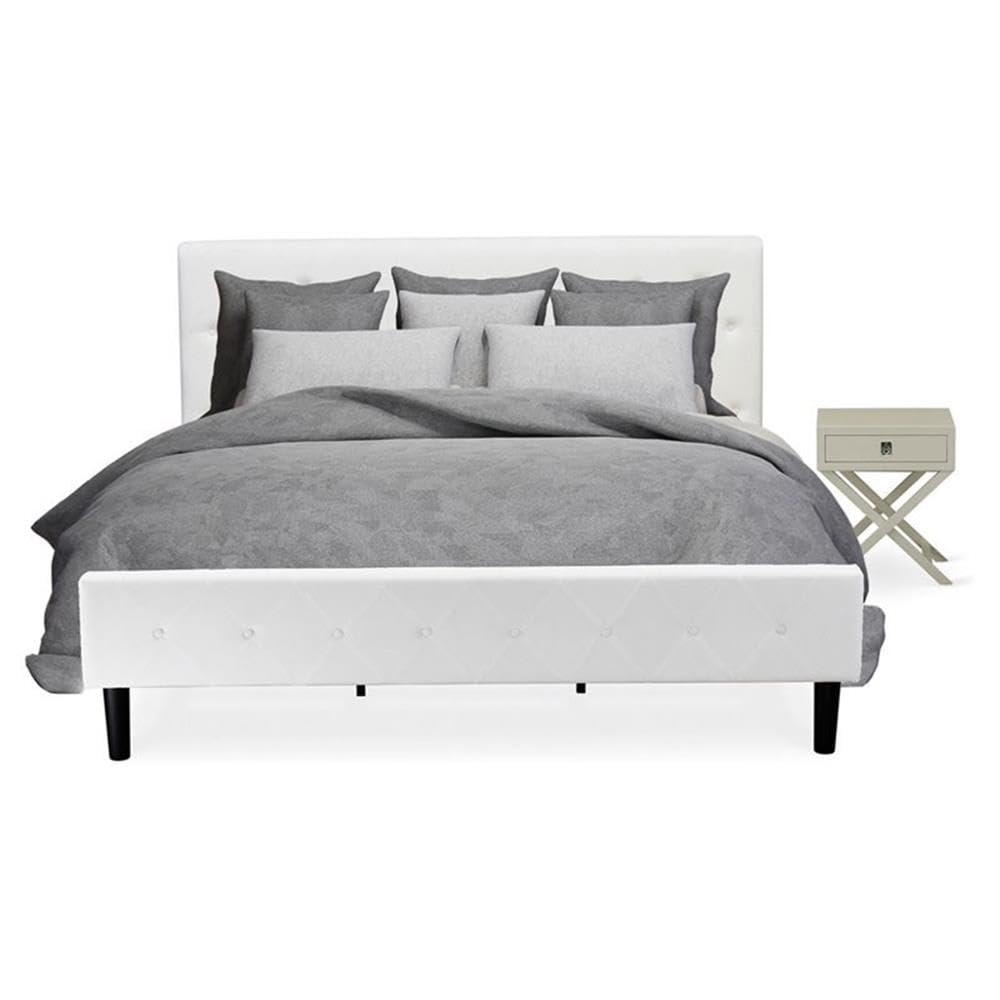 East West Furniture NL19K-1HA14 2 Piece King Size Bedroom Set - Button Tufted Bed Frame - Linen white Velvet Fabric Upholstered Headboard and an Urban Gray Finish Nightstand