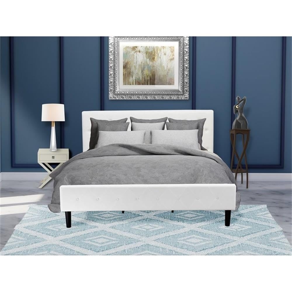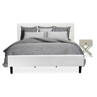 EAST WEST FURNITURE - NL19K-1HA14 - 2 PIECE KING BEDROOM SETDiscover a captivating king-size bedroom set that embodies innovation and forward-thinking design. The platform bed features a chic Black finish complemented by a Velvet White Color, while the nightstand exudes sophistication in pristine white. This harmonious fusion of colors effortlessly integrates the set into any room decor, exuding an enchanting allure. Transform your bedroom with a touch of antique glamour by incorporating this exquisite wooden bedroom set, complete with a king platform bed and a wooden nightstand. Its robust construction ensures both durability and versatility, making it an ideal choice for elevating any bedroom space. Furthermore, this wooden bedroom set not only requires minimal maintenance but also fits perfectly into budget-friendly options. Assembling the king platform bed is a breeze with the provided step-by-step instructions and hardware packs.BED SET FEATURES: Material: Engineered Wood King Size Bed Frame Fabric: Velvet Platform Bed Fabric Color: White Wooden Bed Frame Legs Color: Black Small Nightstand Top Color: Urban Gray Night Stand for Bedroom Legs Color: Urban Gray Dimensions of Bed: Length: 89; Width: 81; Height: 47. Night Stand Dimensions: Length: 19.7; Width: 15.7; Height: 23.6.Include in this Package: 1 Platform Bed and 1 Wood Night StandNote: Mattress is not included with this King Bed.