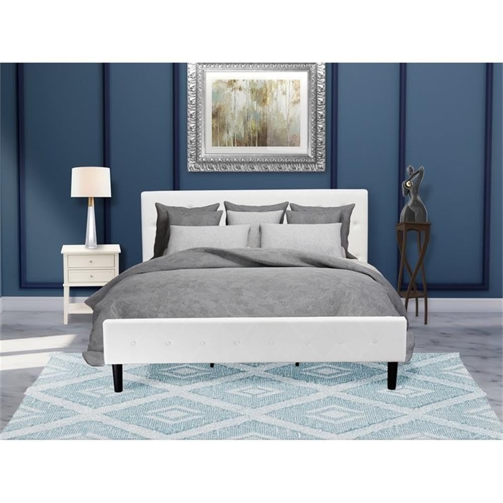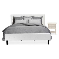 EAST WEST FURNITURE - NL19K-1VL0C - 2 PIECE KING BEDROOM SETIntroducing a beautiful wooden bedroom set that blends modern style and innovative design with classic glamour. The King bed features a stylish Black finish with White Velvet Color upholstery, while the accompanying nightstand showcases an elegant Wire Brushed Butter Cream hue. Together, these captivating colors effortlessly enhance any bedroom decor. Crafted from durable wood, this king-size bedroom set includes a bed frame and nightstand, making it a perfect addition to any bedroom. It offers exceptional quality, versatility, and convenience while being low-maintenance and budget-friendly. Assembling the wooden bed frame is easy with the provided step-by-step instructions and hardware pack. Elevate the ambiance of your bedroom with this fantastic set!KING BEDROOM SET FEATURES: Material: Engineered Wood King Platform Bed Frame Fabric: Velvet Platform Bed Fabric Color: White Wood Bed Frame Legs Color: Black Night Stand Top Color: Wire Brushed Butter Cream Nightstand Legs Color: Wire Brushed Butter Cream Dimensions of Bed: Length: 89; Width: 81; Height: 47. Night Stand Dimensions: Length: 22; Width: 15.7; Height: 28.Include in this Package: 1 King Bed Frame and 1 Mid Century Modern Nightstand.Note: Mattress is not included with this Wood Bed Frame.