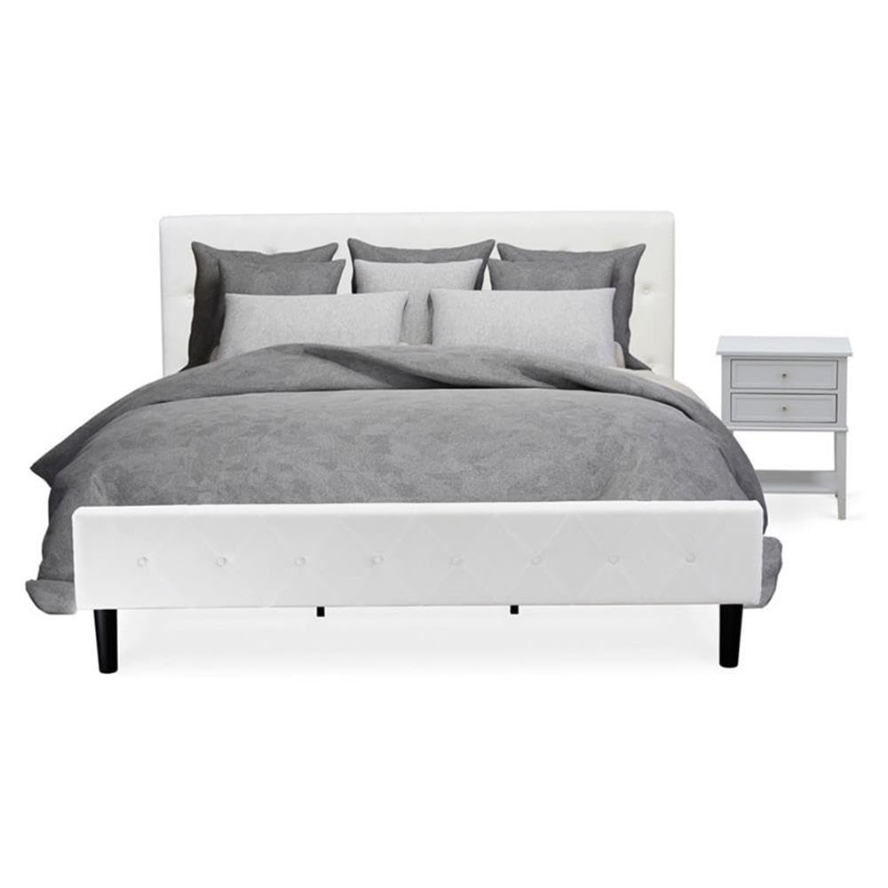 EAST WEST FURNITURE - NL19K-1VL14 - 2 PC KING BED SETThis gorgeous king size bed set is a shining example of innovative design and forward thinking. Add elements of classic glamour to your bedroom with this gorgeous wood bedroom set. Constructed with sturdy wood, this king size bed set comes with a king platform bed frame and a small night stand to decor any bedroom. This king size bed set is sure to enhance any bedroom with quality, versatility, and convenience. This bedroom set is low maintenance furniture and it is a good choice because of how budget-friendly it is. This king size bed can be easily assembled with all the provided step-by-step assembly instructions and hardware pack.BEDROOM SET FEATURES: Material: Engineered Wood King Bed Fabric: Velvet King Size Bed Fabric Color: White Platform Bed Frame Legs Color: Black Bedroom Nightstand Top Color: Urban Gray Wood Night Stand Legs Color: Urban Gray Dimensions of Bed: Length: 89; Width: 81; Height: 47. Night Stand Dimensions: Length: 22; Width: 15.7; Height: 28.Include in this Package: 1 King Size Platform Bed Frame and 1 Night StandNote: Mattress is not included with this King Size Bed.