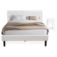 EAST WEST FURNITURE - NL19Q-1DE05 - 2 PC QUEEN SIZE BED SETThis gorgeous bedroom set is a shining example of innovative design and forward thinking. Add elements of classic glamour to your bedroom with this gorgeous bedroom set. Manufactured with durable wooden, this queen size bedroom set includes a modern bed frame and a mid century modern nightstand to decor any bedroom. Our bedside table with 02 USB fast charging ports and two outlets allows you to charge your mobile phones and other devices. It will also help you to plug in your computer or laptop. This bedroom set is sure to enhance any bedroom with quality, versatility, and convenience. This bedroom set is low maintenance furniture and it is a good choice because of how budget-friendly it is. This platform bed can be simply assembled with all the provided step-by-step assembly instructions and hardware pack.QUEEN BED SET FEATURES: Material: Engineered Wood Modern Bed Frame Fabric: Velvet Queen Bed frame Fabric Color: White Queen Bed frame Legs Color: Black Night Stand Top Color: White Night Stands For Bedrooms Legs Color: White Dimensions of Bed: Length: 89; Width: 65; Height: 41.30. Night Stand Dimensions: Length: 23.7; Width: 15.7; Height: 24.Include in this Package: 1 Queen Frame and 1 Nightstand BedroomNote: Mattress is not included with this Queen Size Bed Frame.