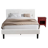 East West Furniture NL19Q-1GA13 2 Piece Queen Bedroom Set - Button Tufted Wooden Bed Frame - Linen white Velvet Fabric Upholstered Headboard and a Burgundy Finish Nightstand