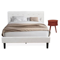 EAST WEST FURNITURE - NL19Q-1GO13 - 2 PC QUEEN SIZE BEDROOM SETThis queen bed set showcases a blend of innovative design and forward-thinking, making it an appealing addition to any bedroom. The incorporation of classic glamour enhances its overall aesthetic appeal. The set features a queen platform bed in a sleek Black finish with elegant White Velvet upholstery, creating a visually striking color combination. Accompanying the bed is a wood nightstand with a tasteful Burgundy hue that effortlessly complements any room decor. Crafted from durable wood, the set includes a queen-size bed frame and nightstands, ideal for elevating bedroom decor. Its high-quality, versatility, and convenience make it a perfect fit for any bedroom. Moreover, this low-maintenance furniture option is budget-friendly and can be easily assembled with the provided step-by-step instructions and hardware packs.BEDROOM SET FEATURES: Material: Engineered Wood Wooden Bed Frame Fabric: Velvet Wood Bed Frame Fabric Color: White Queen Bed Frame Legs Color: Black Nightstand Top Color: Burgundy Night Stand Legs Color: Burgundy Dimensions of Bed: Length: 89; Width: 65; Height: 41.30. Night Stand Dimensions: Length: 19.6; Width: 19.6; Height: 22.Include in this Package: 1 Wood Bed Frame and 1 Wood Night StandNote: Mattress is not included with this Queen Size Bed.