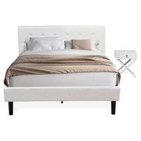 East West Furniture NL19Q-1HA05 2 Piece Modern Bedroom Set - Button Tufted Bed Frame - Linen white Velvet Fabric Upholstered Headboard and a Linen white Finish Nightstand