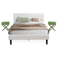 East West Furniture NL19Q-2HA12 3 Piece Bed Set - Queen Size Button Tufted Bed Frame - Linen white Velvet Fabric Upholstered Headboard and a Clover Green Finish Nightstand