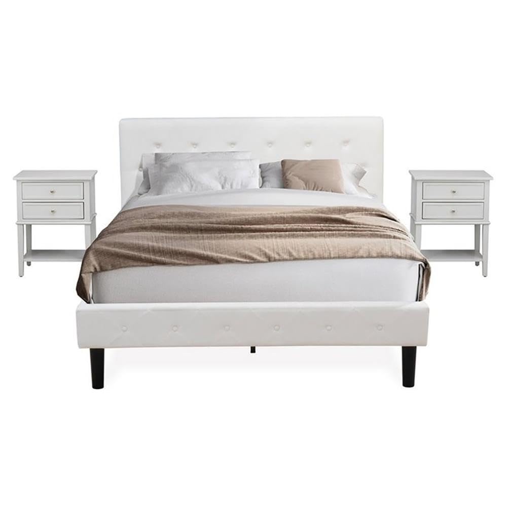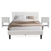 EAST WEST FURNITURE - NL19Q-2VL14 - 3 PC QUEEN SIZE BED SETDiscover the brilliance of innovative design and visionary thinking through this captivating queen bed set. Infuse your bedroom with timeless glamour by incorporating this exquisite queen bed set, designed to elevate your living space. The queen-size platform bed frame boasts a stylish Black finish, complemented by a White Velvet Color for the headboard, and Urban Gray for the nightstands. This striking color combination effortlessly blends with any room decor, making it the perfect addition to your home. Meticulously crafted from durable wood, this queen size bed set includes a platform bed frame and a contemporary nightstand, adding a stylish touch to any bedroom decor. With its exceptional quality, versatility, and convenience, this queen bed set is guaranteed to enhance the ambiance of your bedroom. What's more, it presents a cost-effective and low-maintenance furniture option, making it an ideal choice for practicality and elegance. Assembling this bed frame is a breeze, thanks to the provided step-by-step assembly instructions and hardware pack, ensuring a smooth setup process.QUEEN BED SET FEATURES: Material: Engineered Wood Queen Size Bed Frame Fabric: Velvet Platform Queen Bed Frame Fabric Color: White Queen Size Bed frame Legs Color: Black Wooden Night Stand Top Color: Urban Gray Small Night Stand Legs Color: Urban Gray Dimensions of Bed: Length: 89; Width: 65; Height: 41.30. Night Stand Dimensions: Length: 22; Width: 15.7; Height: 28.Include in this Package: 1 Bed frame and 2 Small NightstandNote: Mattress is not included with this Queen Bed Frame.
