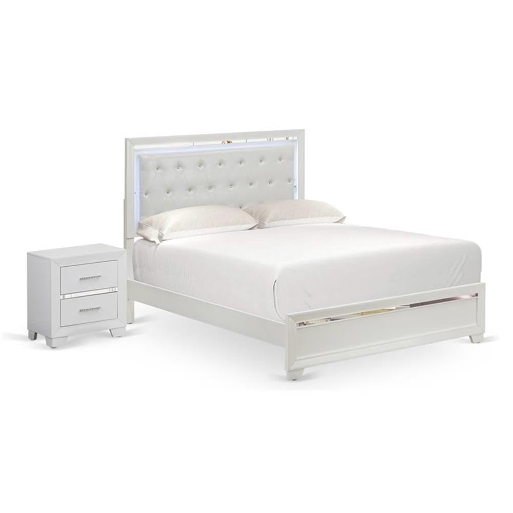 East West Furniture PA05-Q1N000 Pandora 2 Piece Wooden queen bedroom set with a Adjustable LED lighting Headboard queen bed frames, 1 Modern Nightstands - White Finish