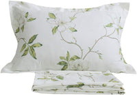 Fadfay Shabby White Floral Bed Sheet Set 100% Cotton Sheets Green Leaves 4Piece - Twin Xl Size