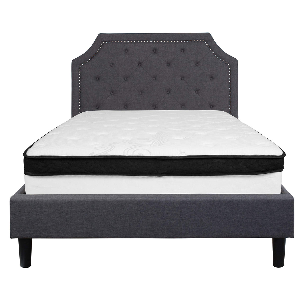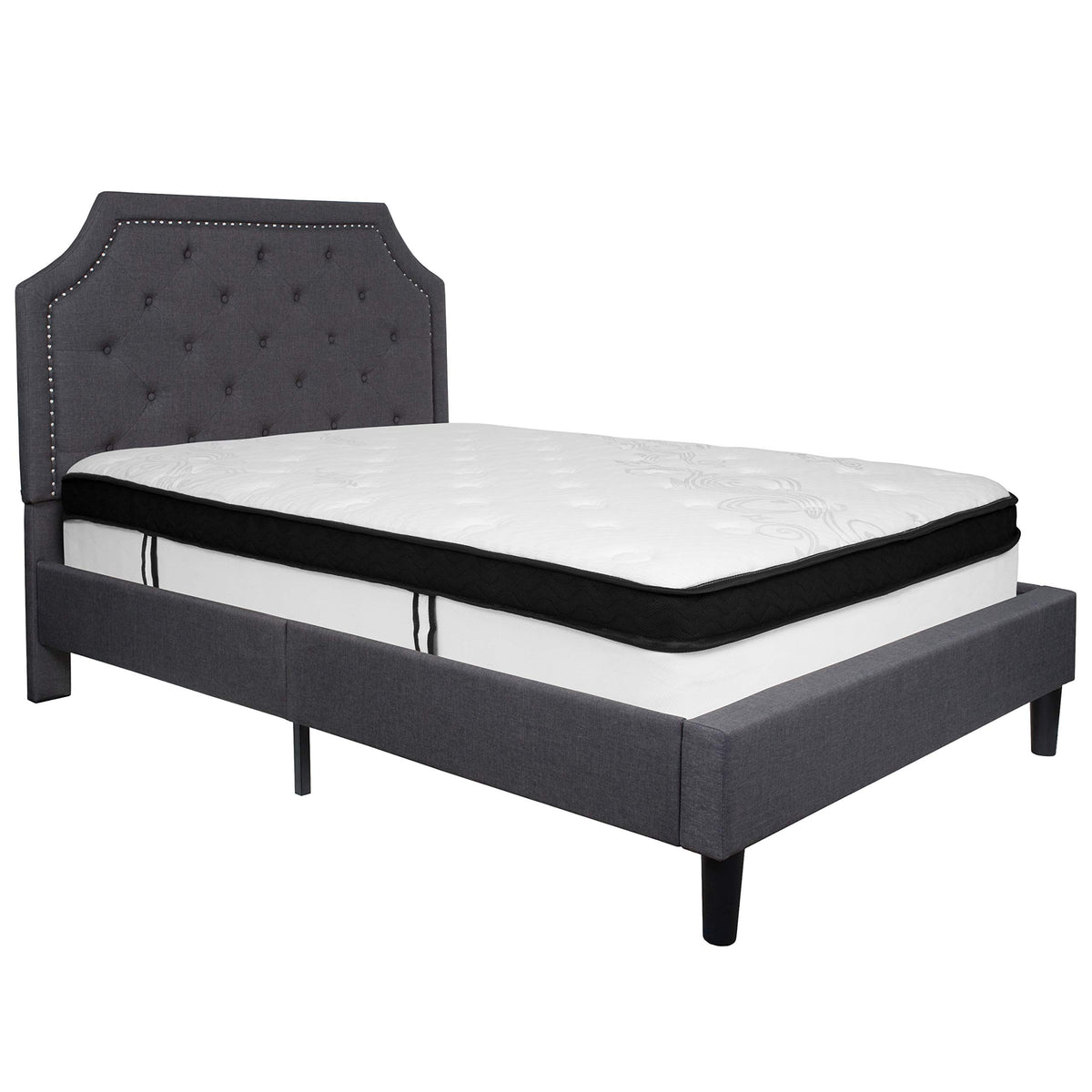 Flash Furniture Brighton Full Size Tufted Upholstered Platform Bed In Dark Gray Fabric With Memory Foam Mattress