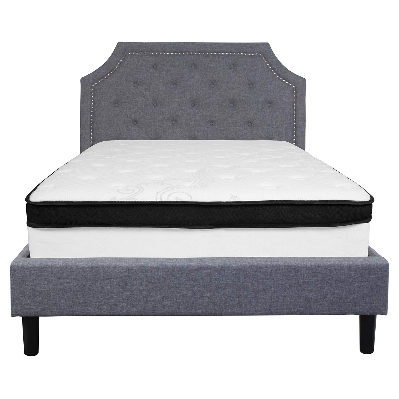 Flash Furniture Brighton Full Size Tufted Upholstered Platform Bed In Light Gray Fabric With Memory Foam Mattress