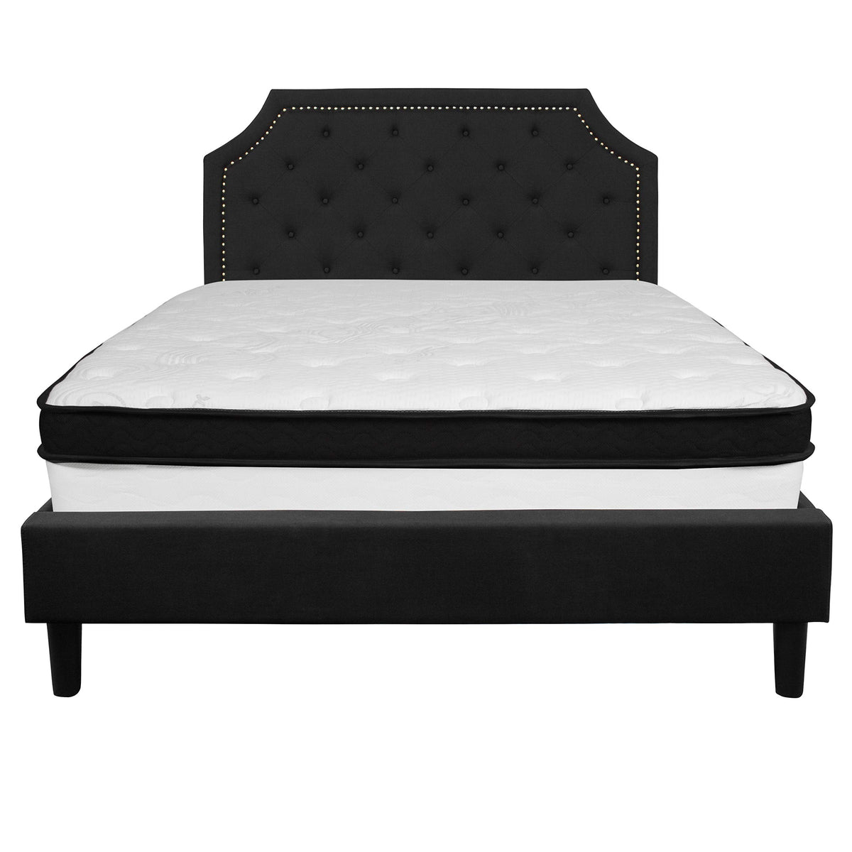 Flash Furniture Brighton Queen Size Tufted Upholstered Platform Bed In Black Fabric With Memory Foam Mattress
