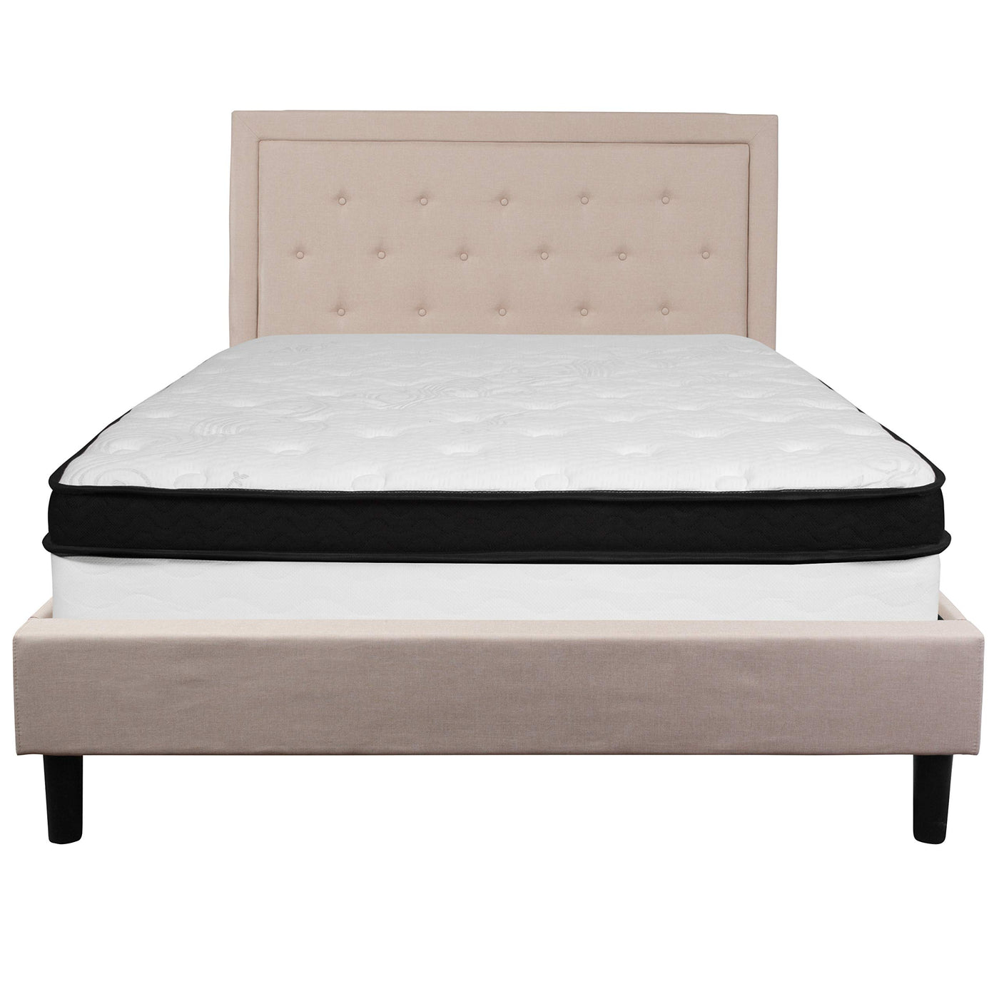 Flash Furniture Roxbury Queen Size Tufted Upholstered Platform Bed In Beige Fabric With Memory Foam -Mattress