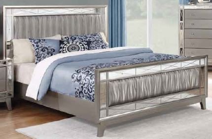 Leighton Panel Bed with Mirrored Accents Mercury Metallic, Eastern King