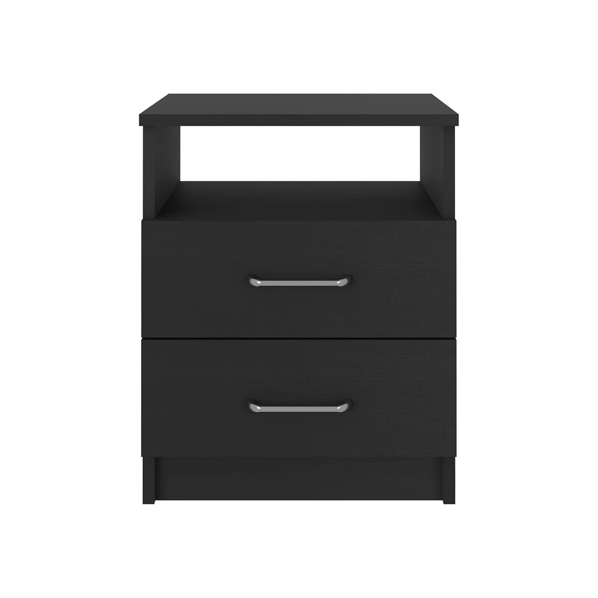 The Louise 3 Piece Bedroom Set is a timeless addition to your oasis. This beautifully crafted set includes a big armoire with a slim design, plus two nightstands that can be placed on either side of the bed for extra storage and convenience. The entire set is made from a luxurious black manufactured wood finish. The London Armoire is a perfect complement to your bedroom! This slim and stylish armoire features double doors with handles for easy access, as well as two top shelves (10,7"H X 8,8"W X 22,3"W) and a hanging rod for all of your garments. The Salento Nightstand is an ideal storage piece for your bedroom. Thanks to its design, you can accommodate it wherever you want. This piece has two drawers with handles for easy opening and closing (each drawer measures 12,4"W X 11,2"D). Additionally, there’s an ample open storage shelf with dimensions of 14,5"W X 4,7"H Dimensions: Furniture 1, London Armoire Width: 23,6” Height: 70,8” Depth: 19” Furniture 2, Salento Nightstand Width: 16” Height: 19,9” Depth: 13,4” Furniture 3, Salento Nightstand Width: 16” Height: 19,9” Depth: 13,4”