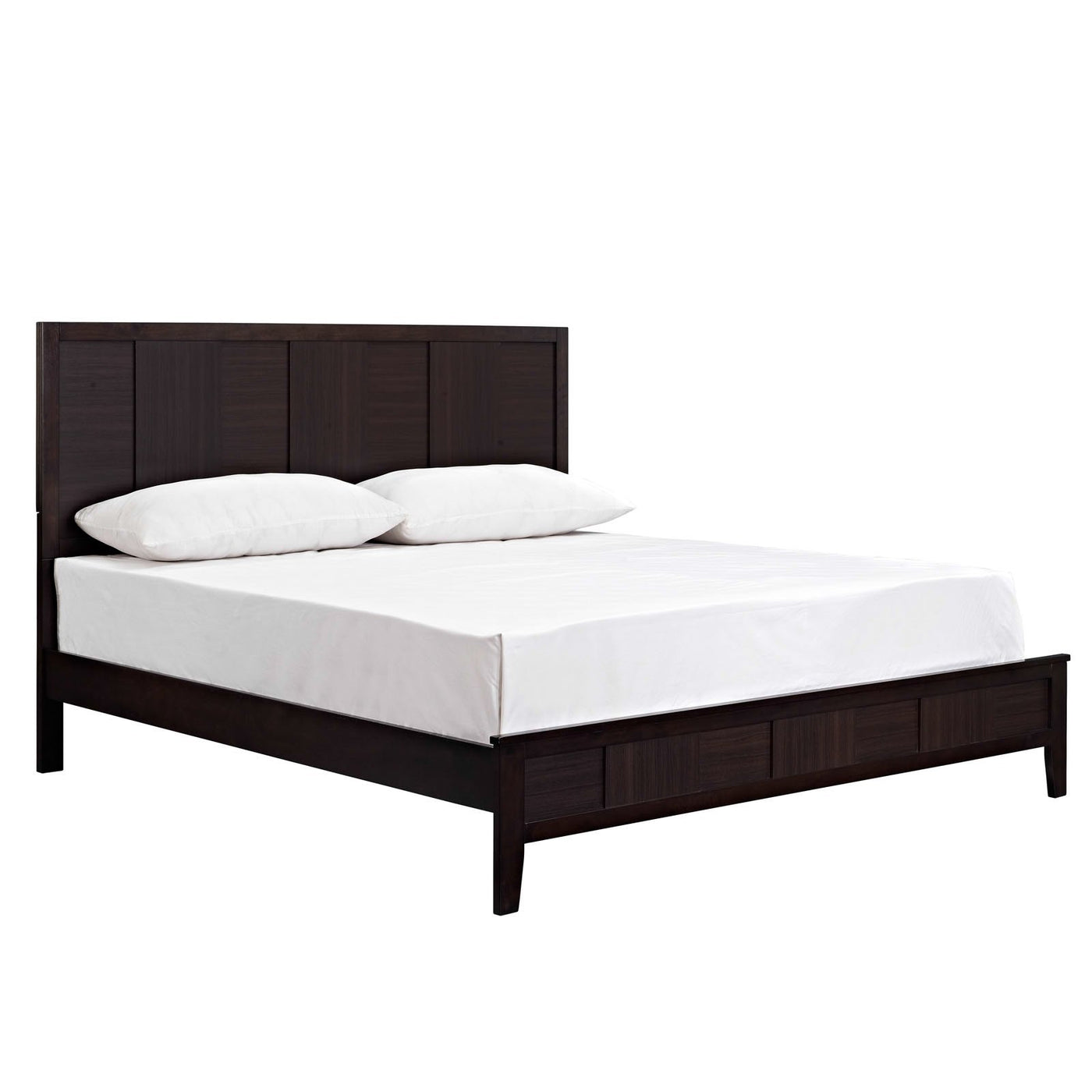 Sophistication Comes In Fine Details With The Wood Paneling Effect Of The Holly Series. Center Planks Of Wood, Blend With The Cross-Grained Back Surface, To Create An Effect That Is Both Distinguished And Imaginative. The Holly Series Comes Laminated In Varnish, With An Antique Espresso Dark Brown Stain And Requires Assembly. Wipe Clean With Either A Dry Cloth, Or Something Intended For Wood Furnishings. The Set Does Not Include A Mattress Or Box Spring. Includes A King Size Frame (Also Available In A Queen Size Version). Set Includes: One - Holly Footboard One - Holly Headboard One - Holly King Bed Frame One - Holly Nightstand Product Dimensions: Bed Dimensions: 80.5"L X 79"W X 50"H Headboard Dimensions: 78"L X 1.5"W X 50"H Footboard Dimensions: 78.5"L X 1"W X 15"H Side Rail Dimensions: 80.5"L X 0.5"W X 5.5"H Nightstand Dimensions: 23.5"L X 16"W X 23"H Overall Dimensions: 80"L X 95"W X 15"H.