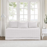 The Urban Habitat Brooklyn Cotton Jacquard Daybed Set Brings A Soft And Charming Update To Your Guest Bedroom. This Ivory Cotton Daybed Features Small Tufted Chenille Dots That Create A Fresh Shabby Chic Look. The 3 Matching Shams And A Solid Bed Skirt Complement The Cotton Jacquard Daybed Set. This Bedding Set Is Also Oeko-Tex Certified, Meaning It Does Not Contain Any Harmful Substances Or Chemicals To Ensure Quality Comfort And Wellness. The Daybed Cover Set Easily Fits A Twin Size Mattress.