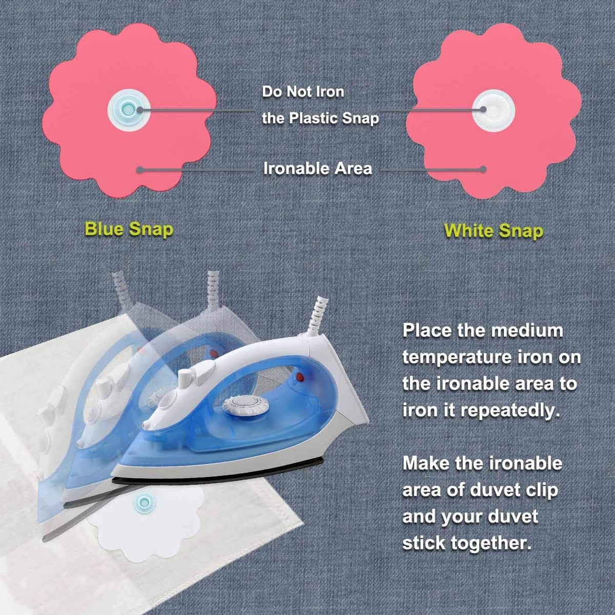 &Nbspour Duvet Clips For Comforter Are Unique, A Cut From The Rest And Can Also Be Used As Duvet Clips For Weighted Blanket. They Will Prevent Your Comforter From Slipping Inside Your Duvet Cover. They Are So Compact, You'Ll Hardly Notice Their Existence. These Comforter Clips For Duvet Covers Make Changing Your Changing The Cover On Your Comforter Super Easy. They Are Easy To Install Duvet Clips Holders All You Need Is An Iron And You'Ll Be Done In Few Minutes; Read On For Instructions. &Nbspit'S Easy To Wake Up Bed Each Morning And Leave A Crumpled Pile Of Sheets In Your Wake. But The Truth Is, When You Dedicate An Extra Minute Or Two Each Morning To Smooth Your Covers With Our Duvet Clips For Down Comforter And Prop Up Your Pillows, The Reward Is Far Greater Than The Effort Required. You Keep Things Clean, Adopt Better Everyday Habits And Instantly Polishes Your Room Plus It Just Looks Nice, And It Feels Really Good To Get Into A Made Bed When You Turn In Each Night. Our Duvet Cover Fasteners/Comforter Grippers Will Help You Make The Bed You Can Bounce A Quarter Right Off. Easy Installation Steps 1. Use A Steam Iron On Medium Temperature To Secure The Blue Button In The Comforter. Do Not Iron The Plastic Cap. 2. Using The Medium Temperature Steam Iron, Secure The White Button In The Sheets. Again, Iron Only The Ironable Area And Not The Cap. 3. Put The White And Blue Button Together. 4. Turn The Sheets In Reverse And Finish. 5. Say Bye To Messy Duvets! Precautions For Easy And Seamless Installation, Please Follow The Instructions Above. Avoid High Temperature Washing Or Drying. To Make The Product Close And Firm, Use Medium Temperature Iron. New And Old Packaging Are Sent Randomly