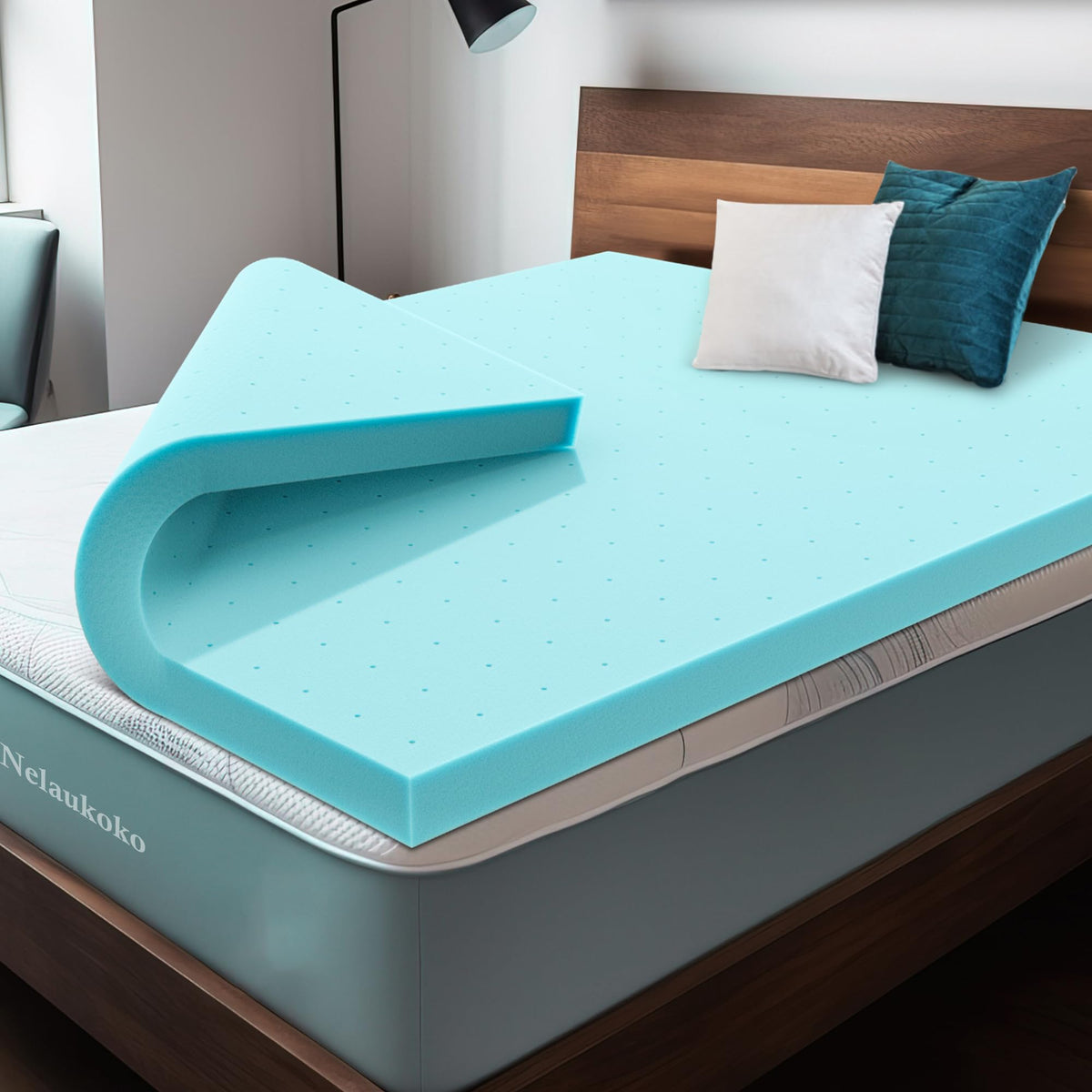 Q: How does the gel infusion in the mattress topper improve sleep comfort?A: The gel infusion in the Nelaukoko memory foam mattress topper helps to regulate temperature by capturing heat, while the porous structure increases airflow. This combination promotes breathability, ensuring a cooler and more comfortable sleep experience throughout the night.