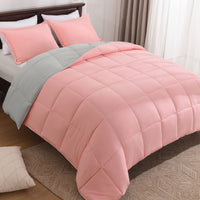Basic Beyond King Size Comforter Set - Fluffy King Bed Comforter Set For All Seasons - Reversible Pink And Grey Comforter Set Ki