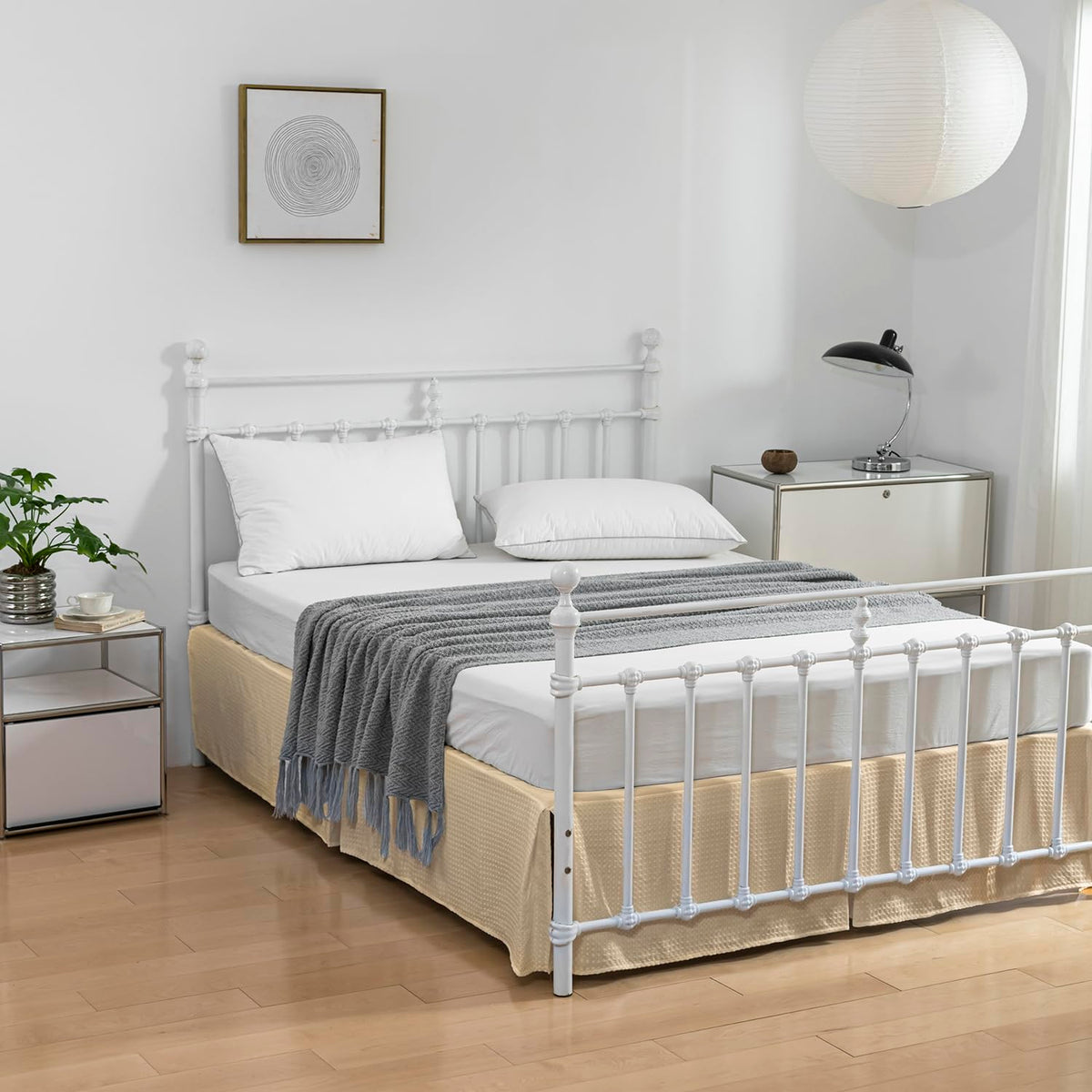 Bed Skirt, Bed Skirt Queen Size, Pleated Waffle Weave Bed Skirt With Split Corners, Queen Bed Skirt 14 Inch Drop (Light Camel, Q