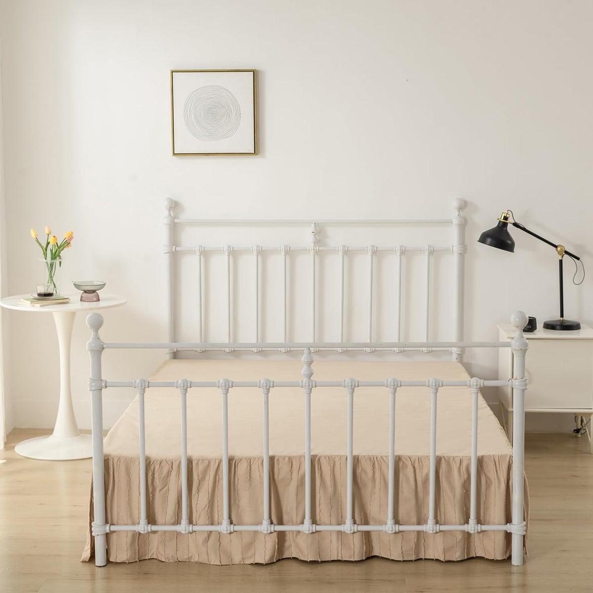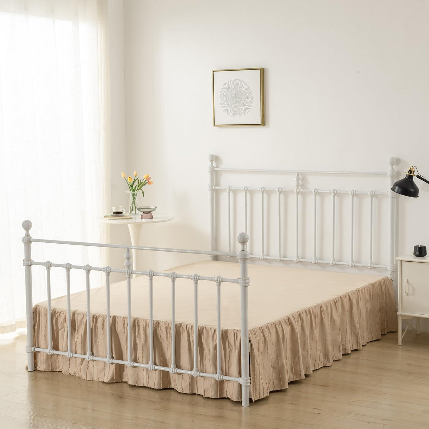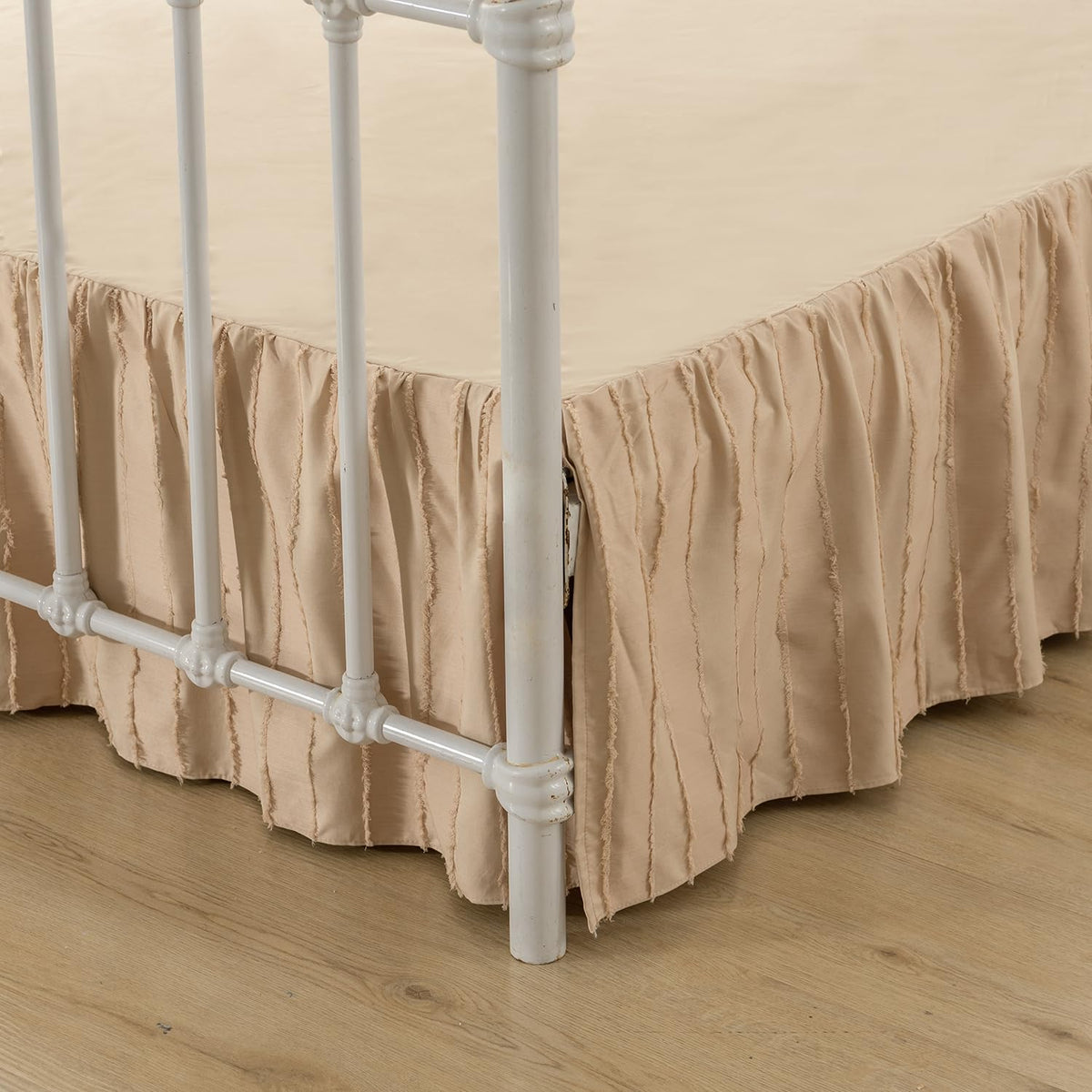 Specifications: Size: Full(54 X 75 Inches) Drop: 14 Inch Color: Light Camel Weight: 500G Features: Bed Skirts With Split Corners For Beds With Footboards Or Bed Posts With 3 Sides Ruffles, Looking Simple And Stylish Coming With A Platform To Keep The Bed Skirt In Place Package: 1 X Ruffled Bed Skirt Full Size With Platform