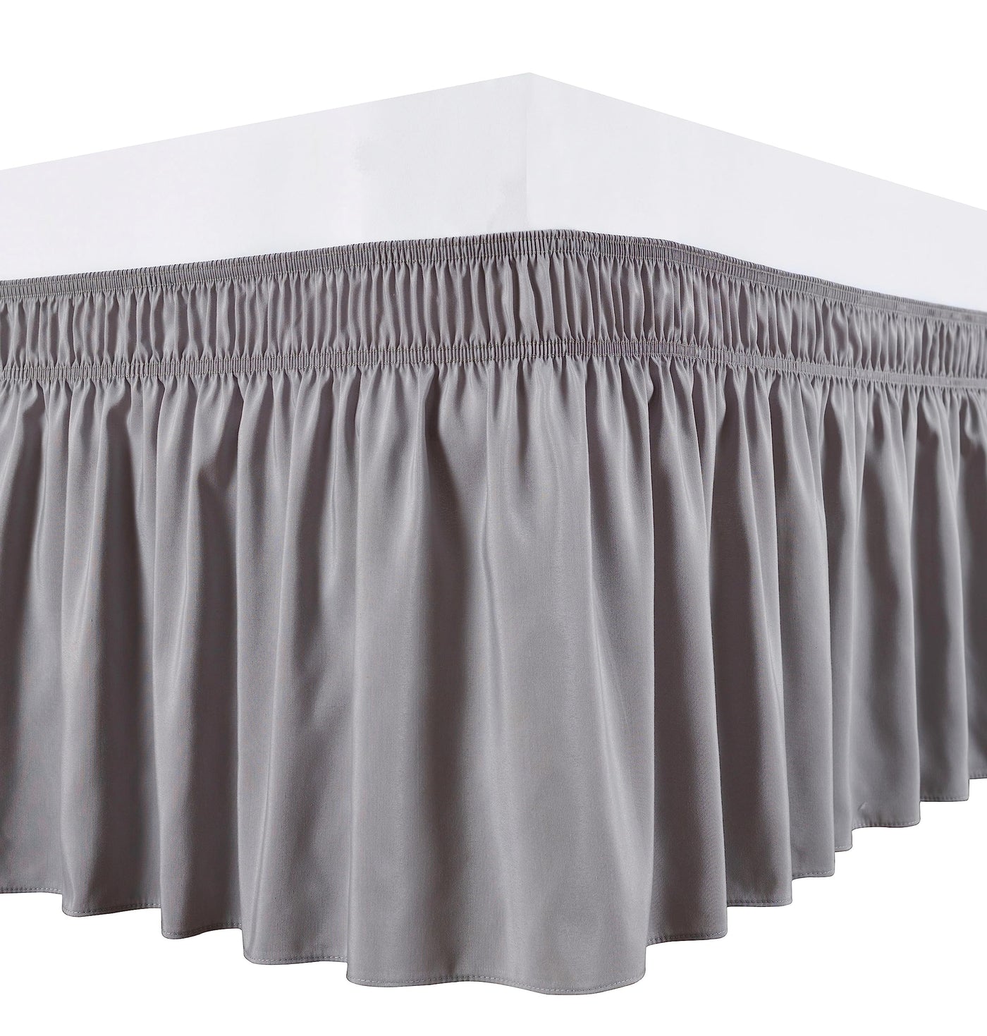 Biscaynebay Wrap Around Bed Skirts For Queen Size Beds Extra Short Drop Of 9', Silver Grey Elastic Dust Ruffles Easy Fit Wrinkl