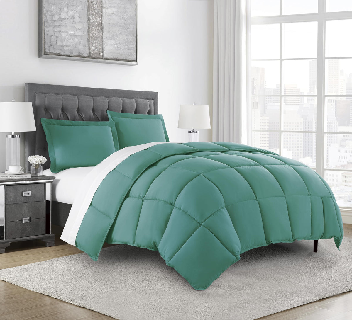 Chezmoi Collection Granite Green Down Alternative Comforter Oversized Queen - 3-Piece Lightweight Comforter Set - All Seasons Mi