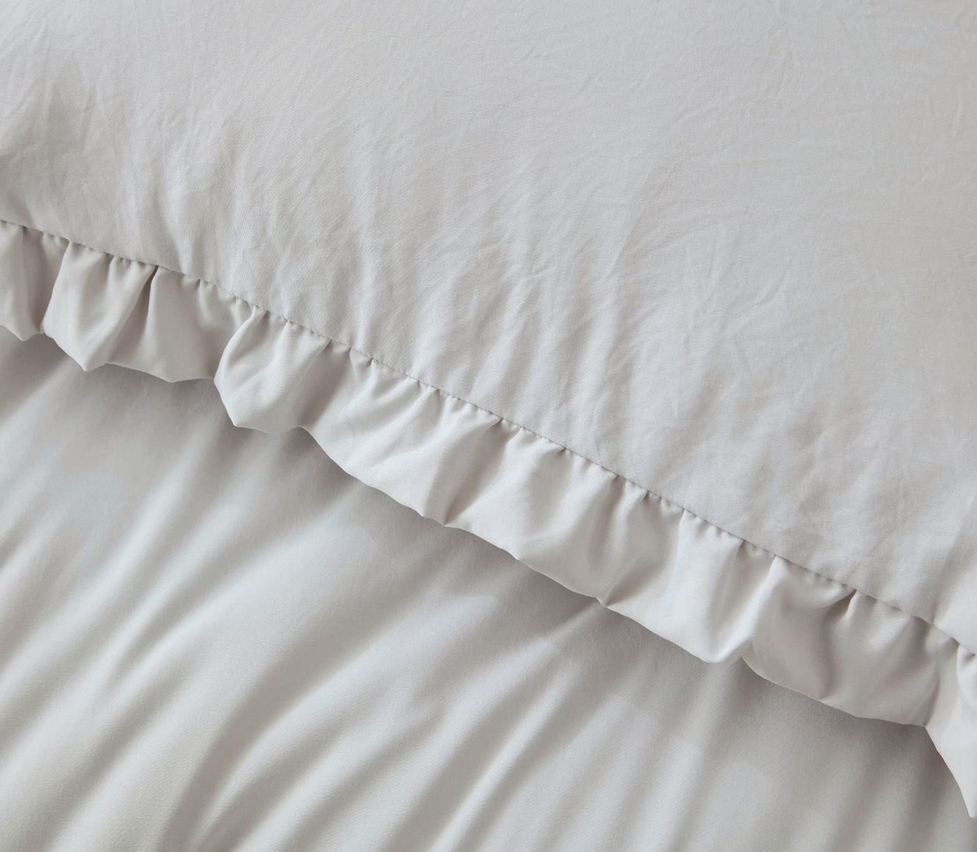 Chezmoi Collection Nora 2-Piece Ruffled Edge Trim Soft Washed Microfiber Comforter Set (Twin, Light Gray)