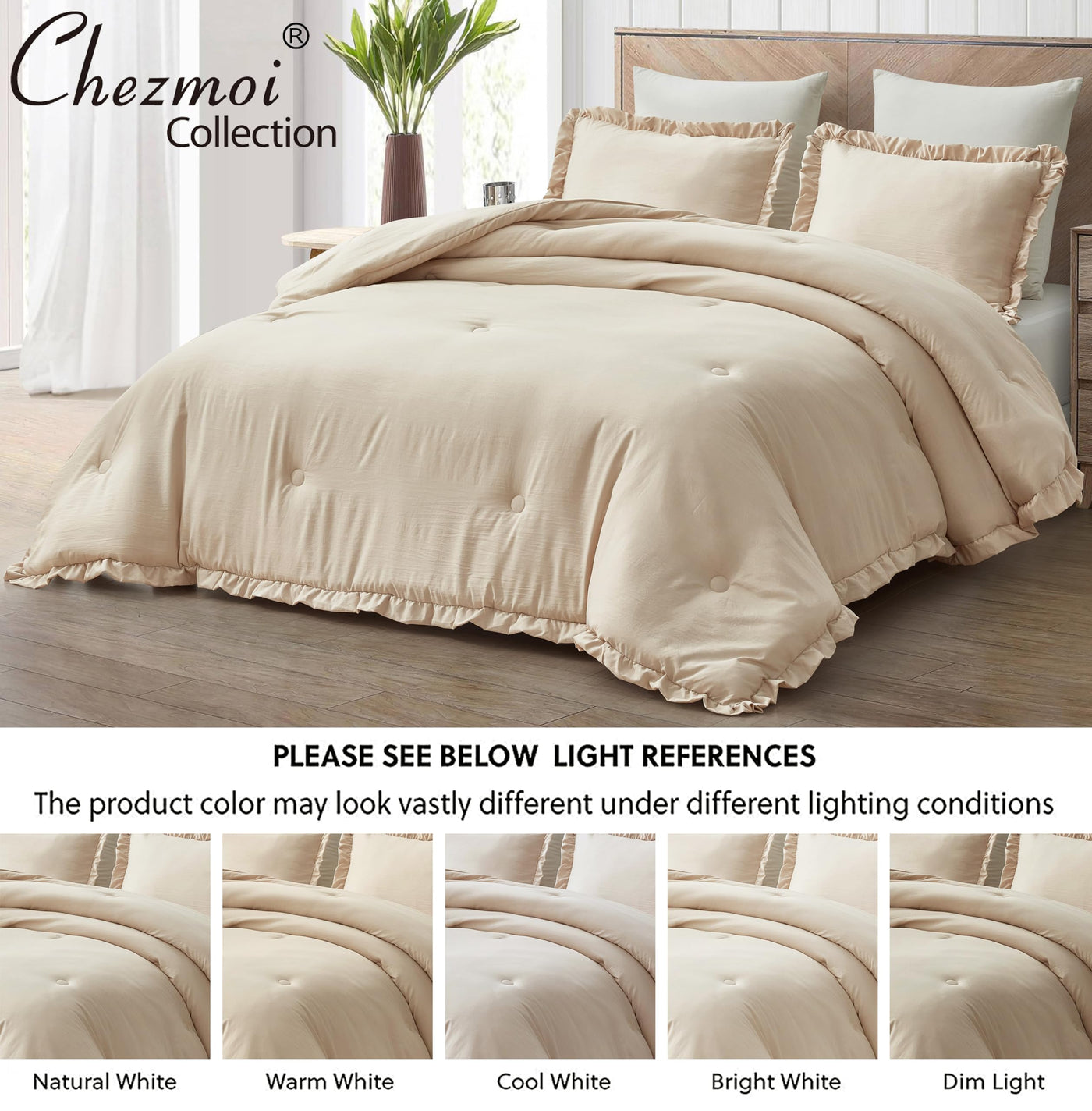 Chezmoi Collection Nora Light Sand Comforter Set Oversized King Size 3-Piece Fluffy Soft Lightweight Bedding Ruffled Edge Trim S