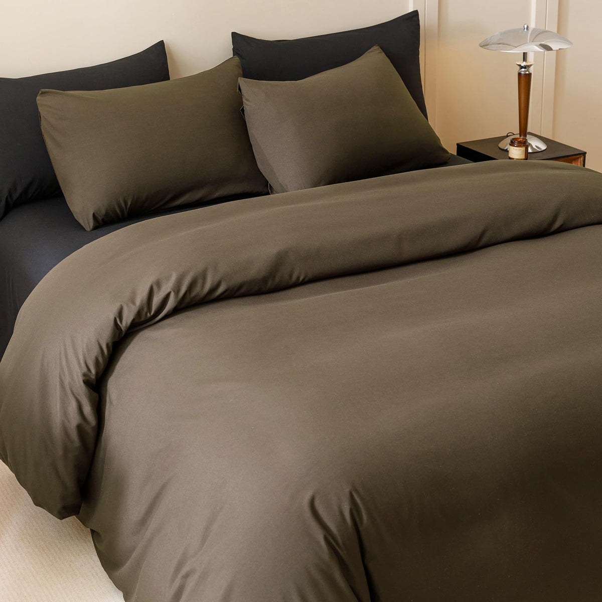Q: Can this comforter set be used in different room styles?A: Yes, the solid brown color design of this comforter set is intended to match various decoration styles, making it suitable for bedrooms, guest rooms, school dormitories, and hotels.