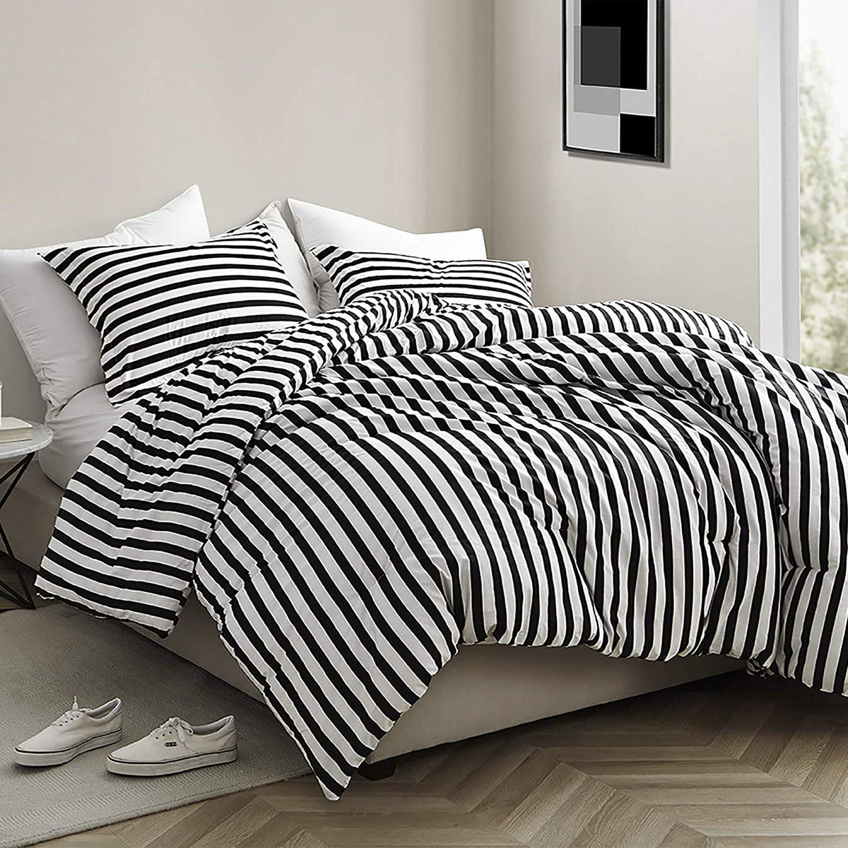 Welcome To Clothknow, There Are High Quality Comforter Here And We Look Forward To Providing An Unique Shopping Experience For You. Our Vision: To Create A Soft, Elegant And Cozy Sleep Environment For Our Customers.About Size:Black And White Striped Full Comforter Sets : 1 X Comforter ( 80''X 90'' ) + 2 X Pillowcases ( 20'' X 26'');Package Includes:1 X Comforter2 X Pillow Casescare Instruction:1. Wash Separately, Avoid Soaking For More Than 30 Minutes2. Machine Wash In Cold Water;3. Tumble Dry On Low Or Dry Naturally;4. Do Not Dry-Clean;5. Do Not Bleach;Guarantee: Any Query Or Issues, Pls Feel Free To Email Us At Clothknow@Aliyun.Com. We Will Try Our Best To Protect Customer'S Benefits. Please Order Our Goods With Confidence. Thank You So Much??