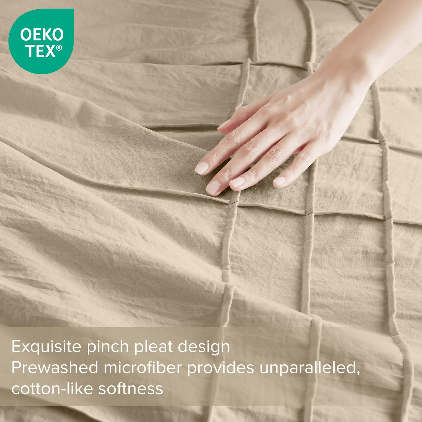 Comfort Spaces Khaki King Size Duvet Cover Set - 3-Pc Pintuck Pleated Duvet Cover King, All Season Lightweight, Extra Softness Pre-Washed Microfiber King Bed Cover Shams, King