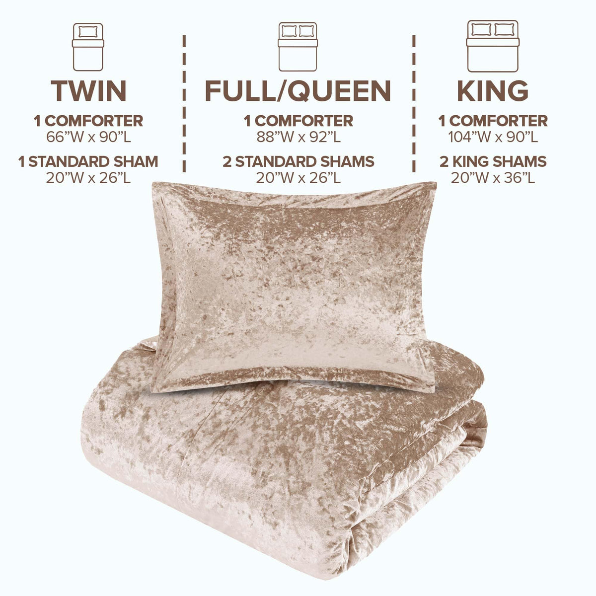Q: What materials are used in the Comfort Spaces Luxe Velvet Comforter Set?A: The Comfort Spaces Luxe Velvet Comforter Set features a luxurious velvet exterior that provides a silk-like sheen, while the reverse side is made from ultra-soft brushed microfiber for added comfort and coziness.