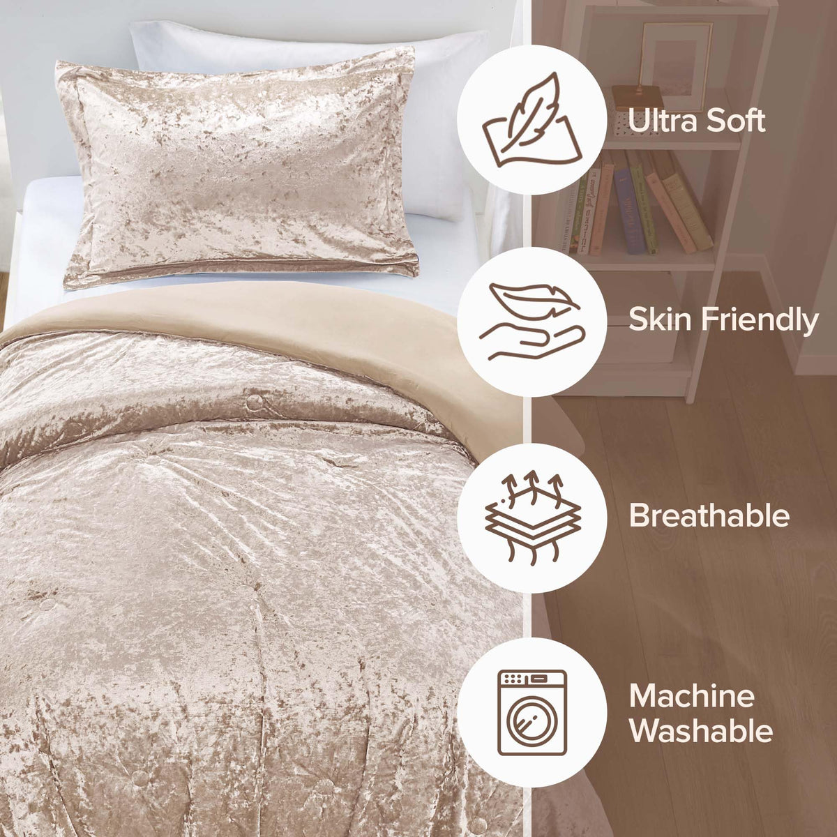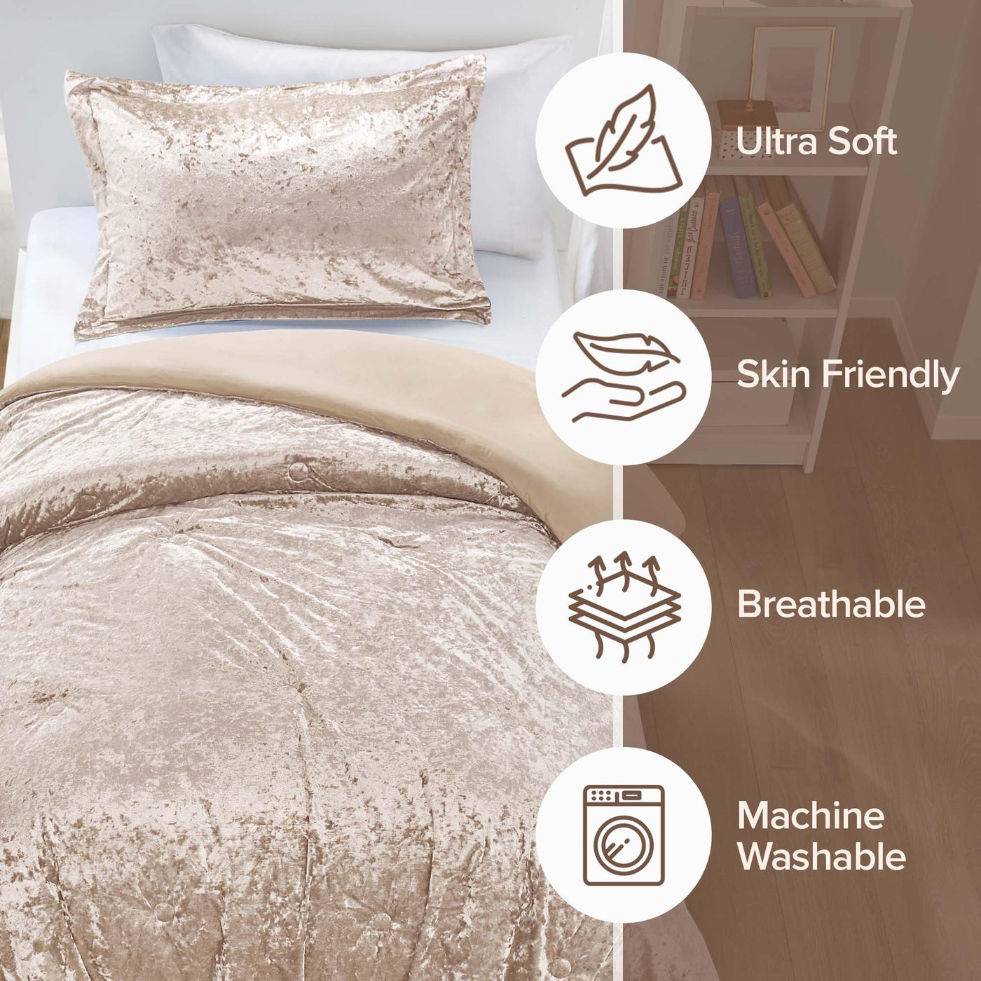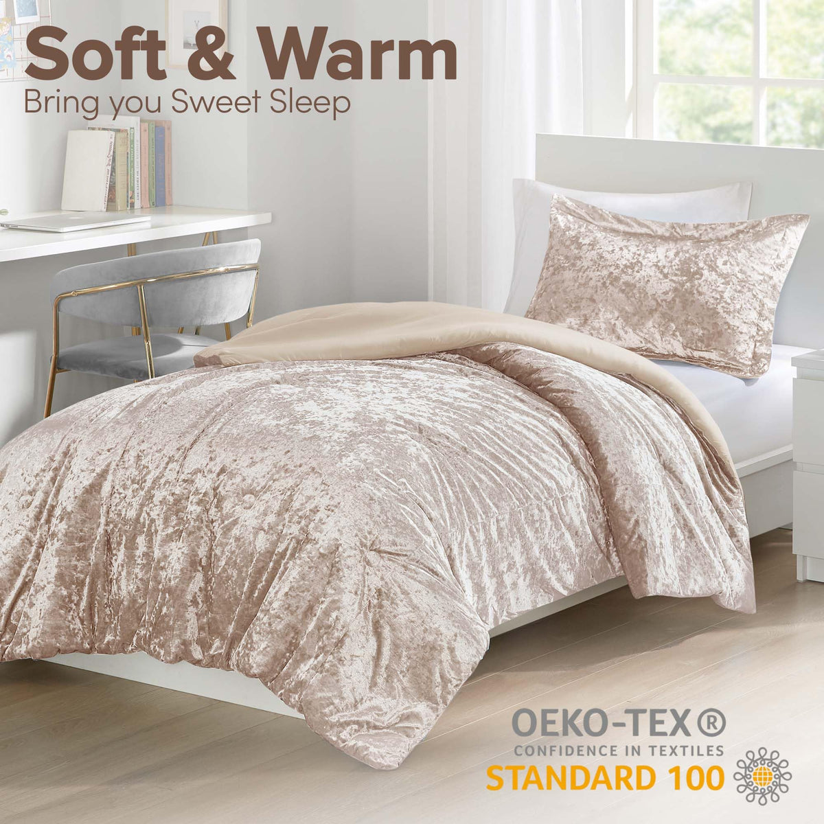 Comfort Spaces Luxe Twin Comforter Set Velvet Comforters For Twin Size Bed, Microfiber Reverse, Juliette, All Season Velvet Bedd