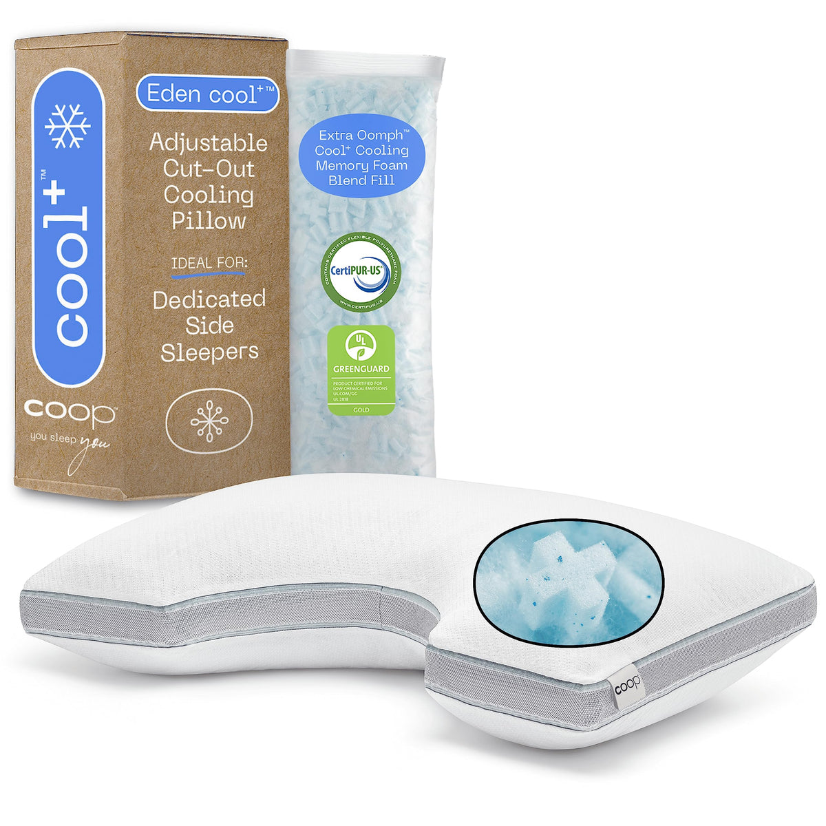 Introducing Coop Home Goods Pillow'S Latest Bedding Innovation, The Eden Cool+ Pillow, Designed To Revolutionize Your Sleep Experience. Say Goodbye To Night Sweats, Hot Flashes, Neck Pain, Migraines, Headaches, Discomfort, And Sleepless Nights. Our Commitment To Your Comfort Has Reached New Heights With This Thoughtfully Designed Product. The Eden Cool+ Pillow Has Complete Cooling Technology. It Ensures That You Stay Cool And Dry Throughout The Night. Inside This Memory Foam Pillow, You'Ll Get Gel-Infused Oomph Fill And Plus-Shaped Pieces That Increase Airflow By 50%. This Innovative Combination Of Memory Foam And Microfiber Blend Dissipates Excess Heat, Eliminating The Discomfort Of Overheating And Moisture. On The Outside, A Heat-Wicking Liner And Soft Cool-Touch Cover Provide Additional Cooling Properties, Keeping You Calm And Relaxed. What Sets The Eden Cool+ Pillow Apart Is Its Adjustable Design, Allowing You To Personalize Your Comfort Level. Unzip The Cover And Add Or Remove Stuffing To Achieve Your Desired Firmness. Each Package Includes A 0.5 Lb Bag Of Fill, Giving You The Freedom To Create The Perfect Pillow For Your Needs. Additionally, The Pillow Offers Two Sides To Choose From - The Cushy Cool Side And The Firm, Supercooled Pad Side, Ensuring A Good Night'S Sleep, No Matter Your Preference. When It Comes To Safety And Quality, The Coop Cooling Pillow Is A Name You Can Trust. The Eden Cool+ Pillow Is Certipur-Us And Greenguard Gold Certified, Giving You Peace Of Mind While You Recharge And Cozy Up For A Night Of Undisturbed Sleep. Proudly Imported And Subject To Rigorous Testing, This Pillow Guarantees The Sleep Of Your Dreams. Experience The Coolness And Comfort You Deserve With Coop Pillow'S Eden Cool+ Pillow. Beat The Heat, Enjoy Deeper And More Restorative Sleep, And Wake Up Refreshed And Revitalized. Upgrade Your Sleep Game Today And Discover The Difference For Yourself!