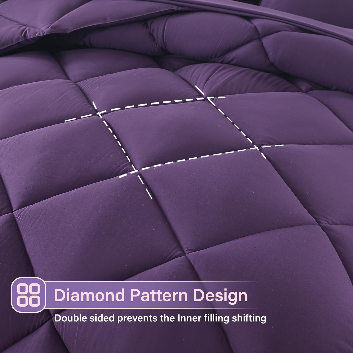 Cosybay Bed In A Bag Full Comforter Sets 7Pcs All Season Solid Down Alternative Bedding Sets Purple With Comforter, Pillow Shams