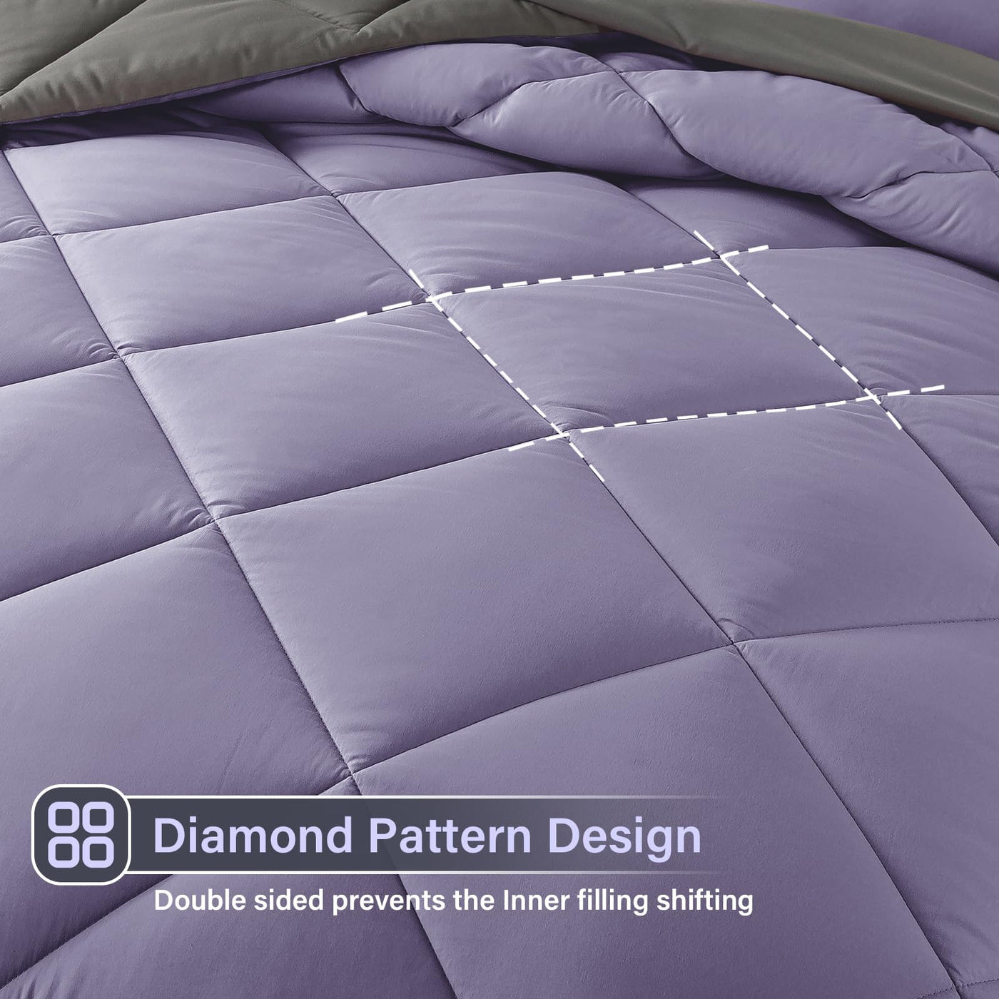 Cosybay Bed In A Bag Full Reversible Comforter Sets 7Pcs All Season Down Alternative Bedding Sets Lavender And Grey With Comfort
