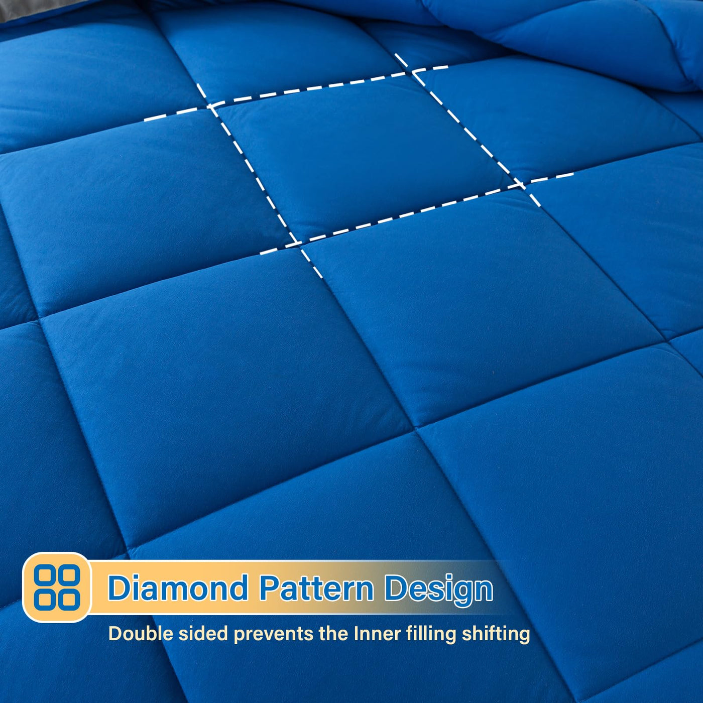 Cosybay Bed In A Bag Queen Comforter Sets 7Pcs All Season Solid Down Alternative Bedding Sets Blue And Grey With Comforter, Pill