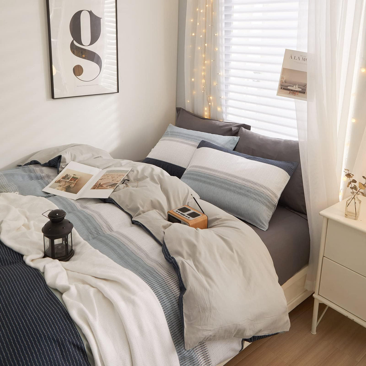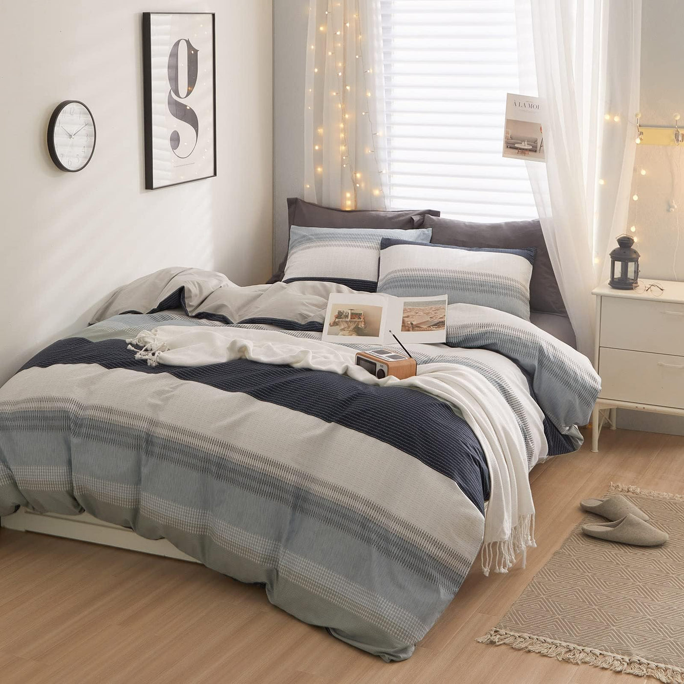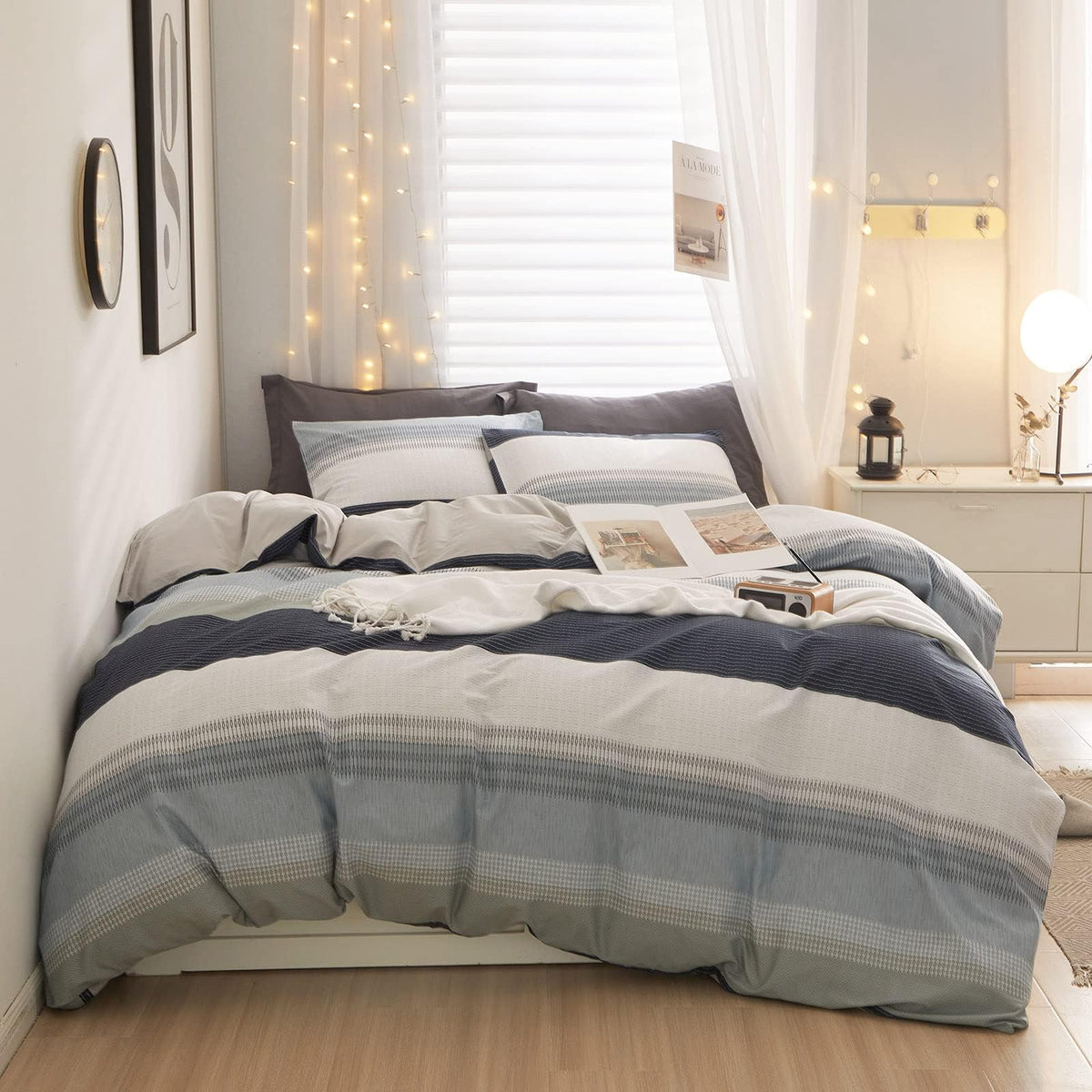 Lifetb Geometric Stripe Duvet Cover Sets 100 Cotton White Blue Grey Stripe Bedding Sets Modern Style Boho Stripe Comforter Cover For Men Women 1 Duvet Cover With 2 Pillowcases