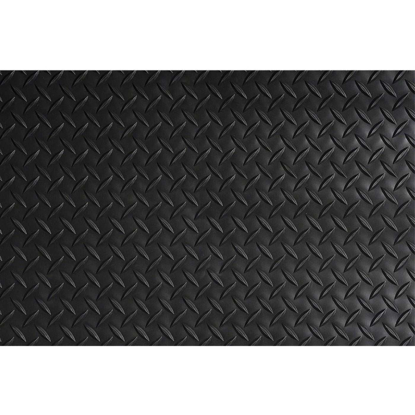 Anti-fatigue mat features a durable, slip-resistant surface that tolerates cart traffic and is resistant to most common fluids and chemicals. Deck plate vinyl surface is fused to industrial-grade, PVC foam backing for comfort and relief. Exclusive Fusion Technology bonds the layers to reduce the possibility of product separation. Mat is designed for use in medium-duty to heavy-duty dry areas.