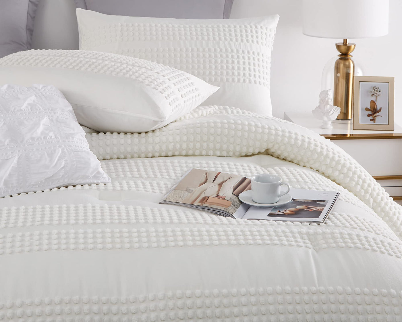 Cupocupa King Size Comforter Set;White Boho Tufted Lightweight Bedding Sets 3Pcs Soft Jacquard Pom Pom Comforter With 2 Pillow C