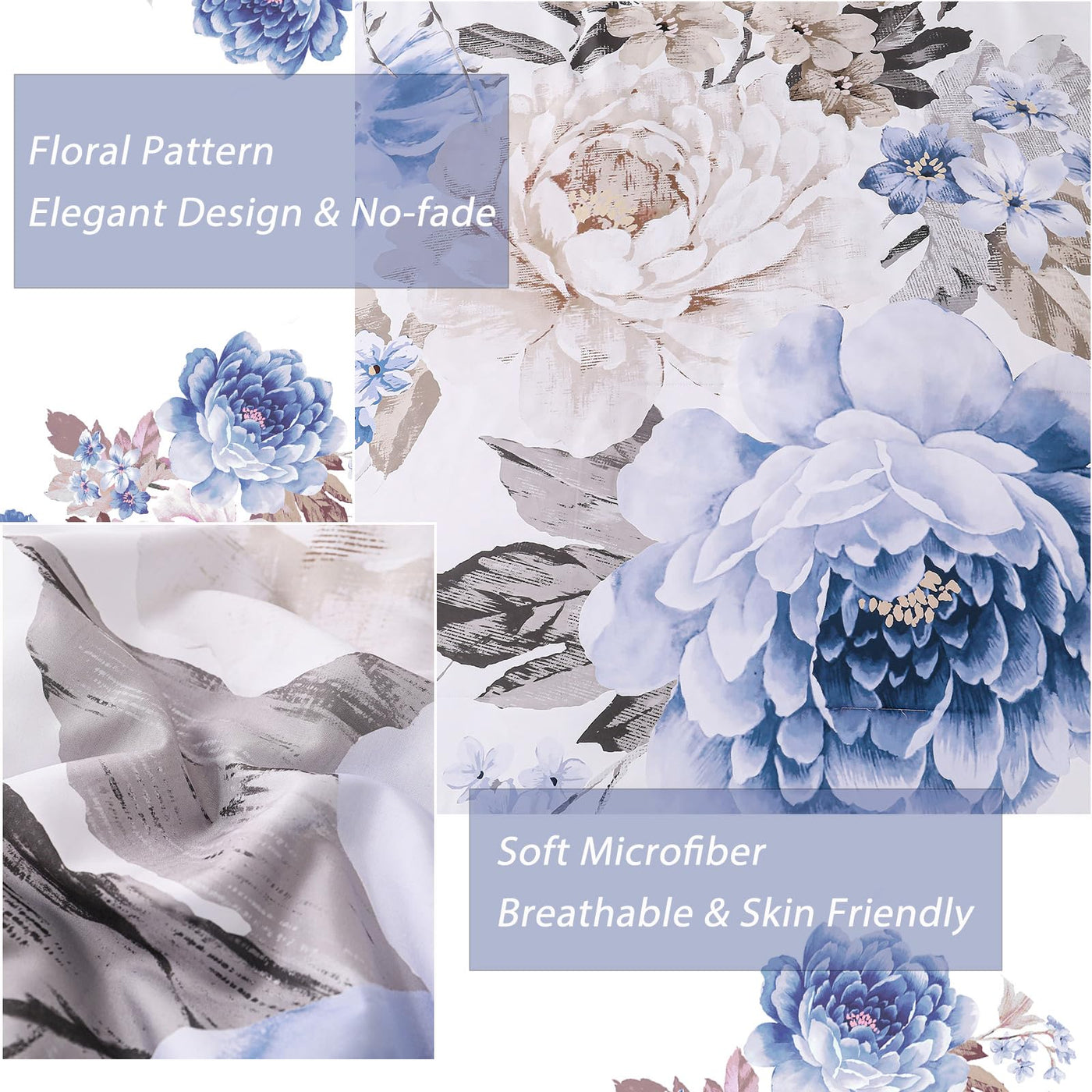 Dintszyayue Blue Comforter Set 7 Pieces Floral Bed In A Bag Queen, Elegant Flower Print Bed Comforter Set, Lightweight Bedding S