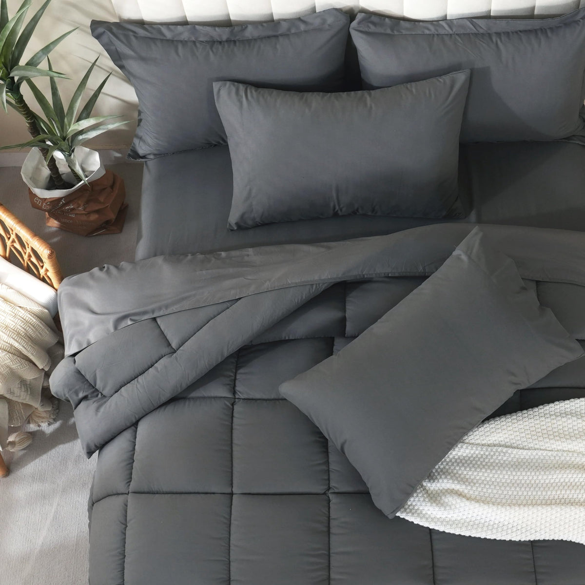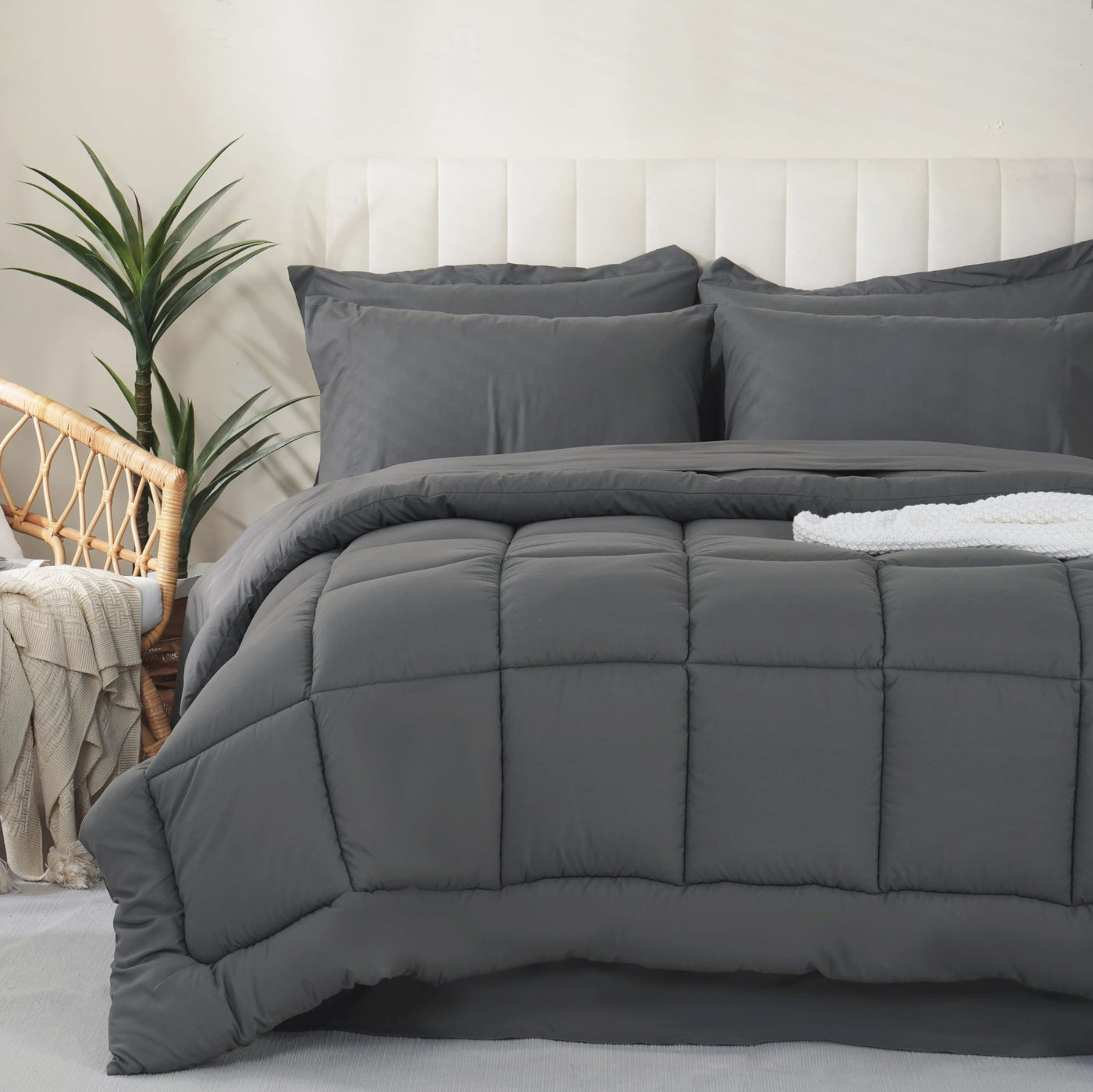 Downcool Full Size Comforter Sets, 7Pcs Full Size Bedding Sets Grey, All Season Down Alternative Bedding Comforter Sets With Com