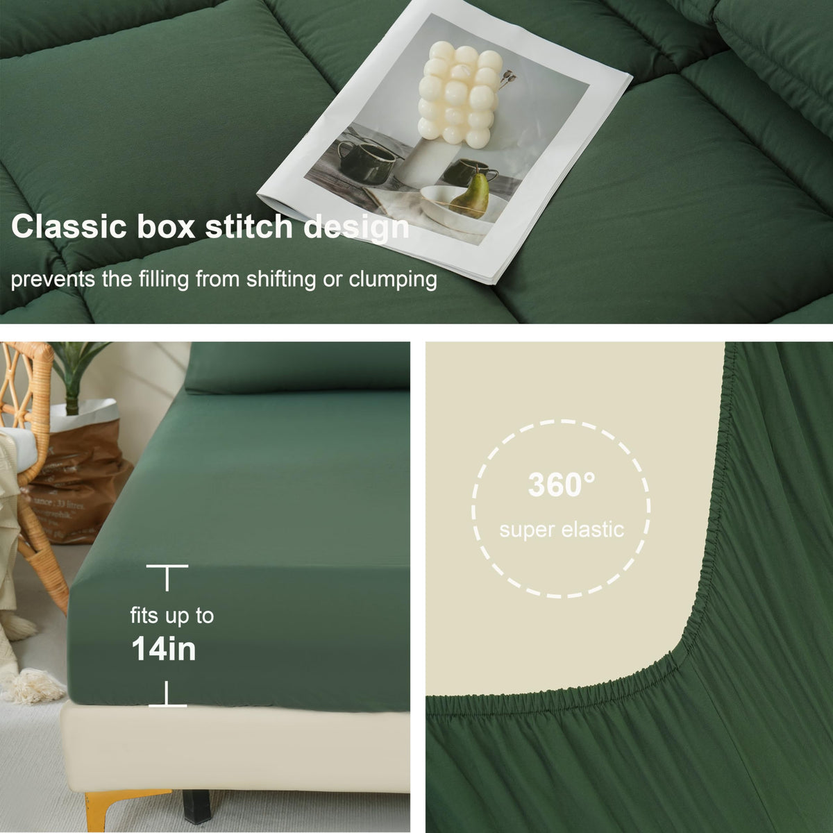 Downcool Full Size Comforter Sets, 7Pcs Full Size Bedding Sets Sage Green, All Season Down Alternative Bedding Comforter Sets Wi