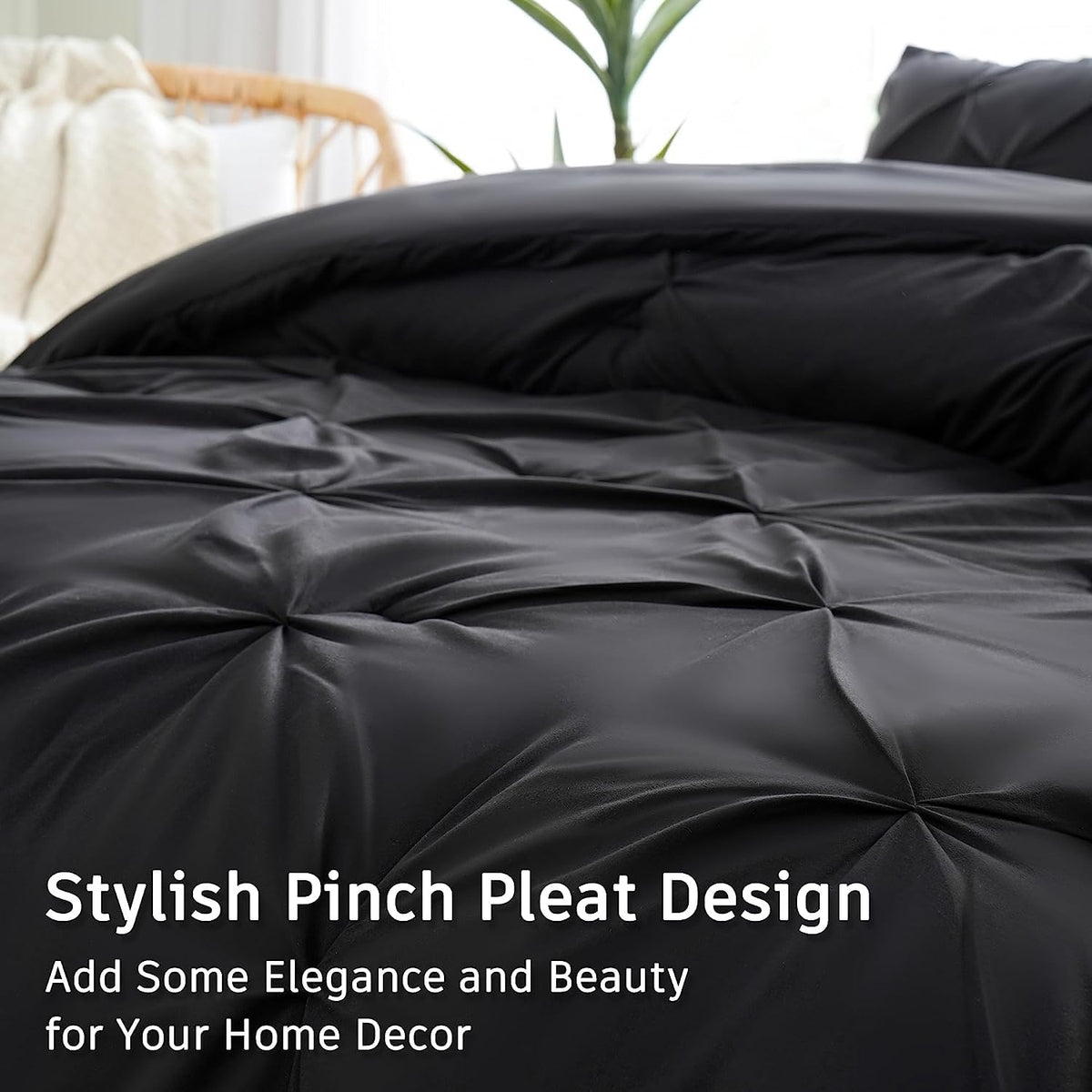 Downcool 3-Piece Bedding Comforter Setsthe Black Comforter King Size Is Made Of Premium Microfiber Fabric, Which Feels Super Soft And Breathable. Filled With High-Quality Down Alternative Microfiber, This King Size Comforter Provides The Right Warmth While Being Lightweight For All Seasons. If You Are Looking For A Warm And Soft King Bedding Set, This Is The One For You!Classic Solid Colors With Exquisite Pinch Pleat Pattern Design, Simple But Beautiful, This King Comforter Set Can Fit Various Types Of Bedroom Decor And Add More Stylish To Your Sleeping Space. Hidden Neat Stitching Prevents The Filling From Shifting And Clumping After Washing.Features:Super Soft Microfiber Fabric240Gsm Down Alternative Fillingpinch Pleated Designsoft & Comfortablelightweightvacuum Packagedwrinkle Freefade-Resistant3-Piece King Size Comforter Set Includes:2 Pillowcases (20*26'')1 Pinch Pleated Comforter(88*92'')